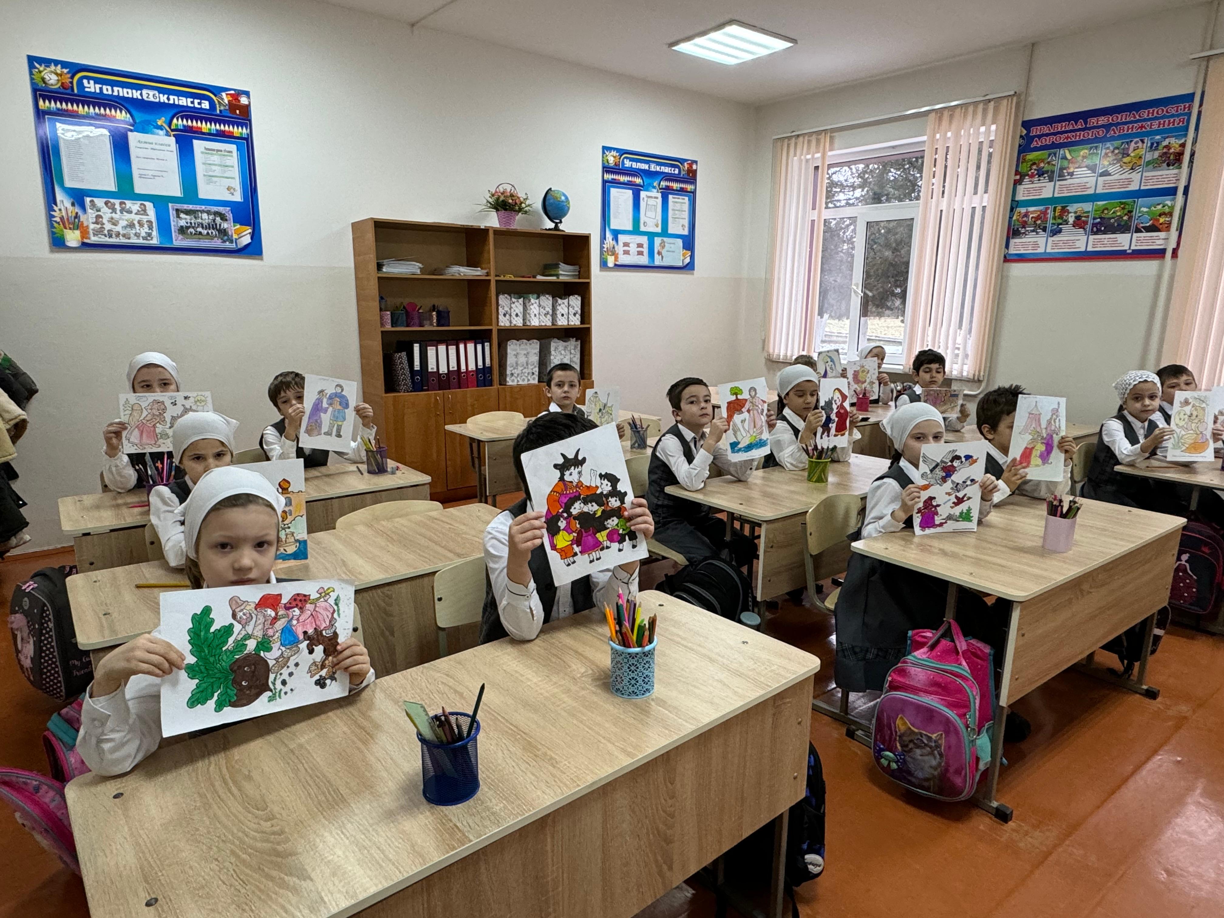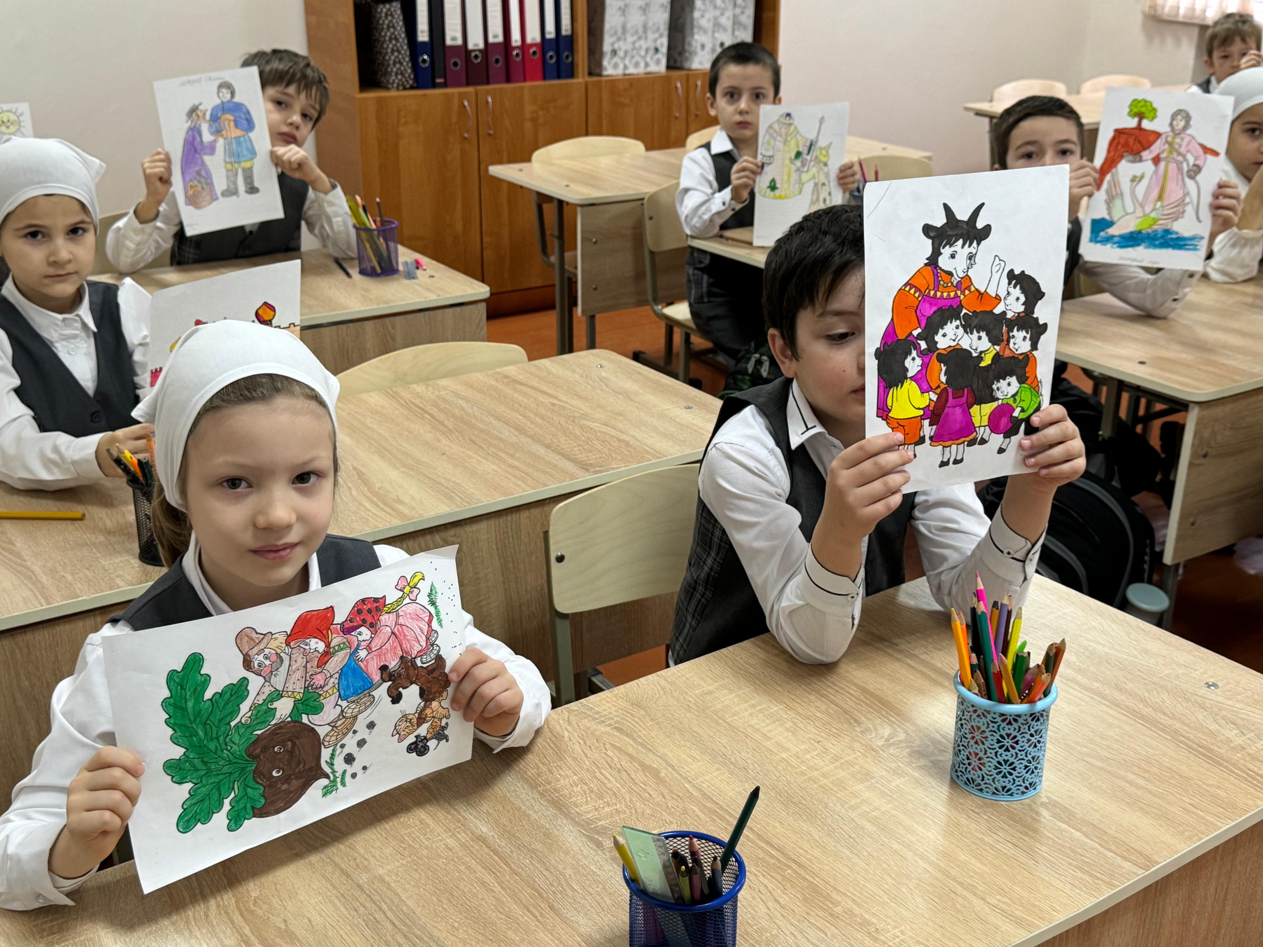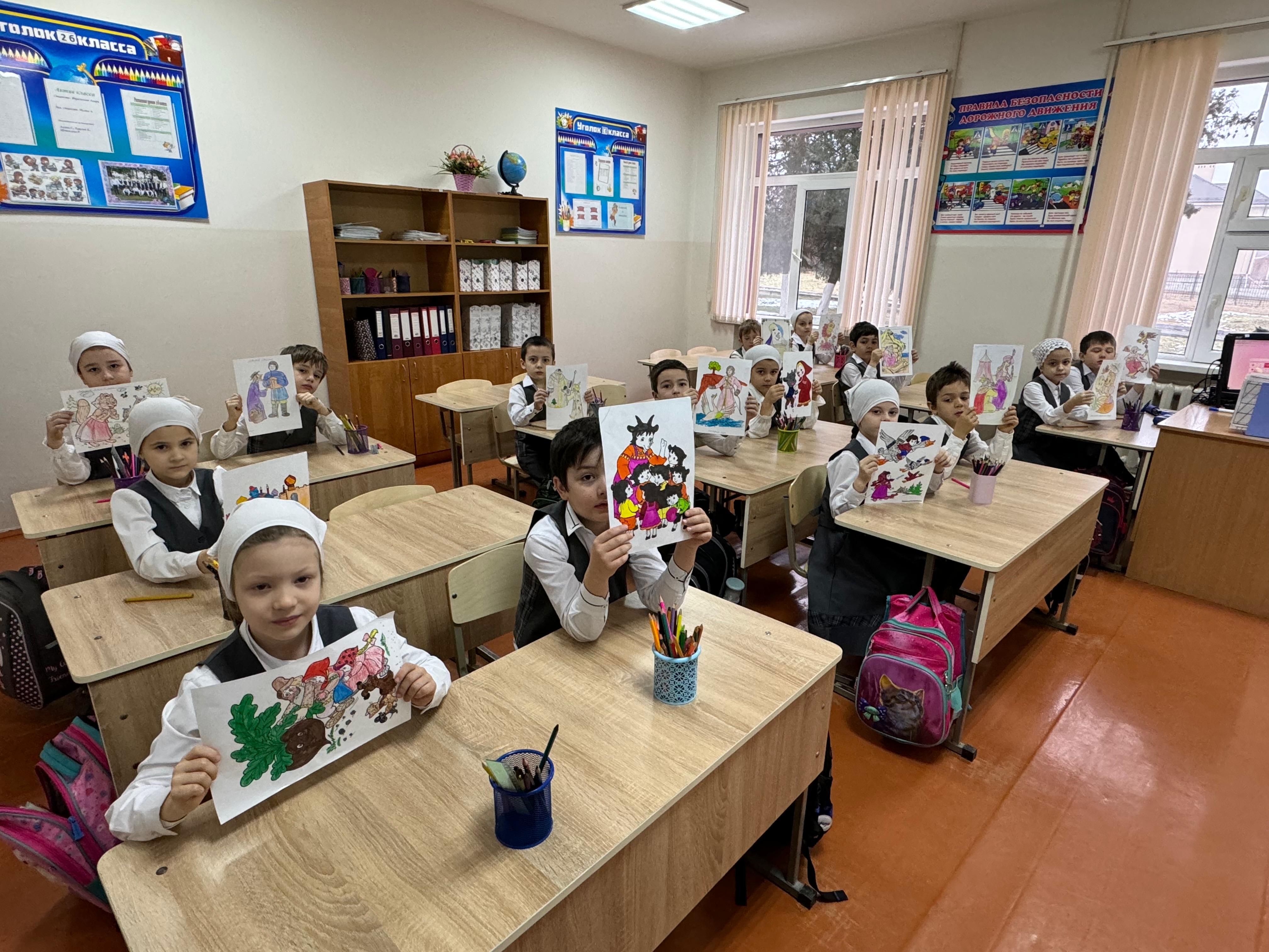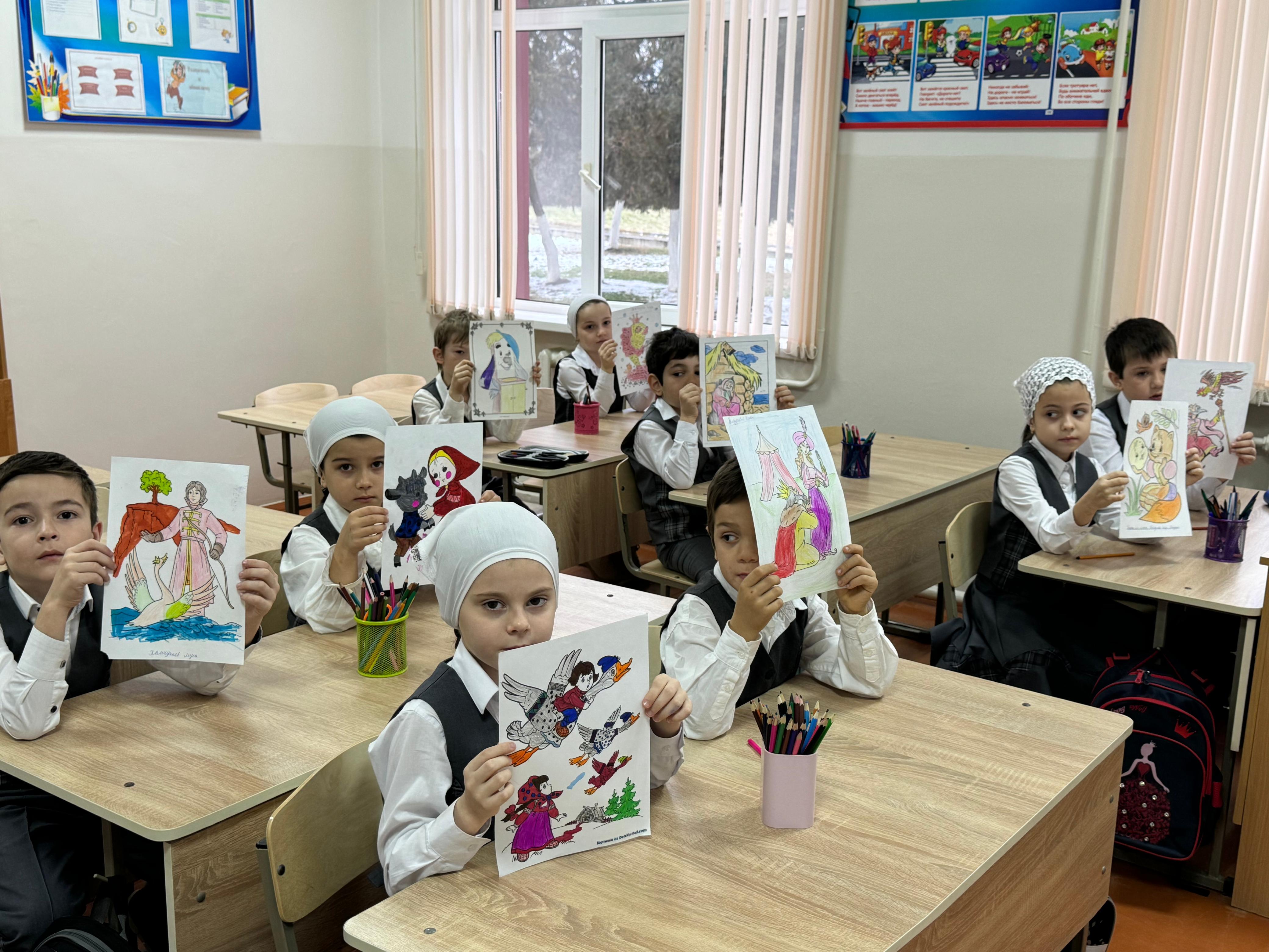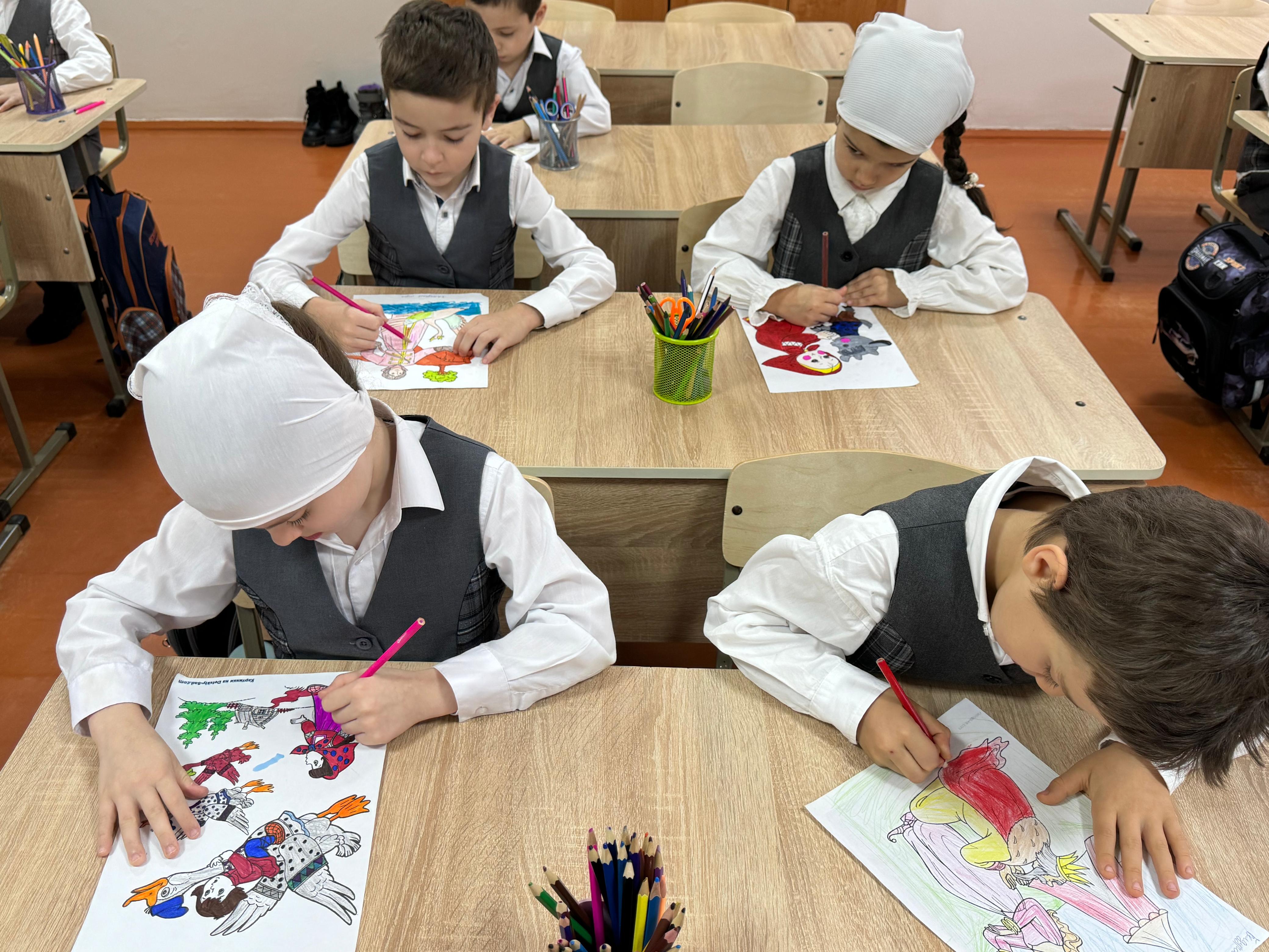 17 февраля в МБОУ «СОШ №4 с. Серноводское» прошёл урок изобразительного искусства по теме: «Моя любимая сказка» в 4 классе. Учитель Акуева Р.Х. поставила перед учениками цель — нарисовать персонажей из своих любимых сказок и изобразить сцену, которая им особенно запомнилась или нравится.
