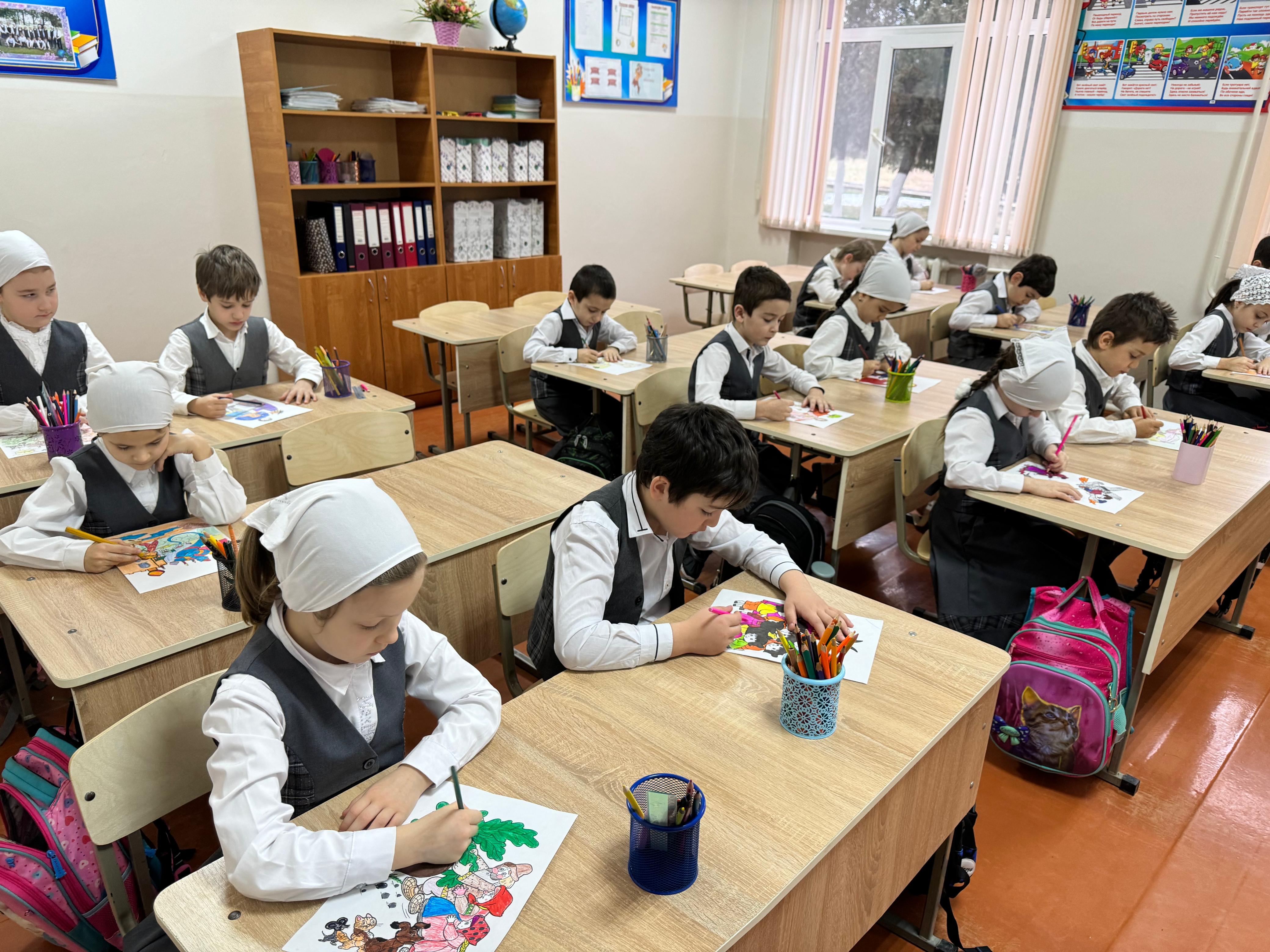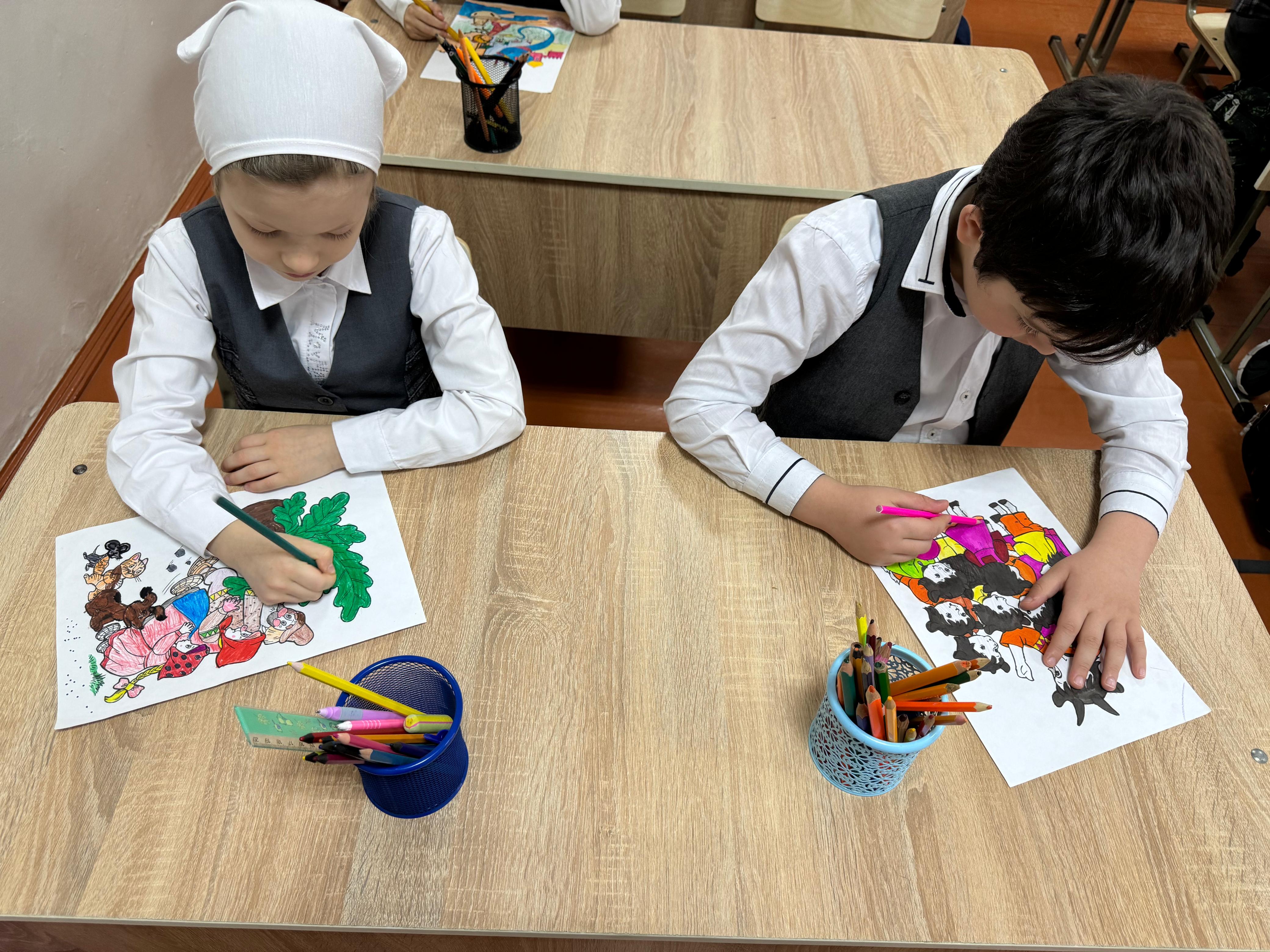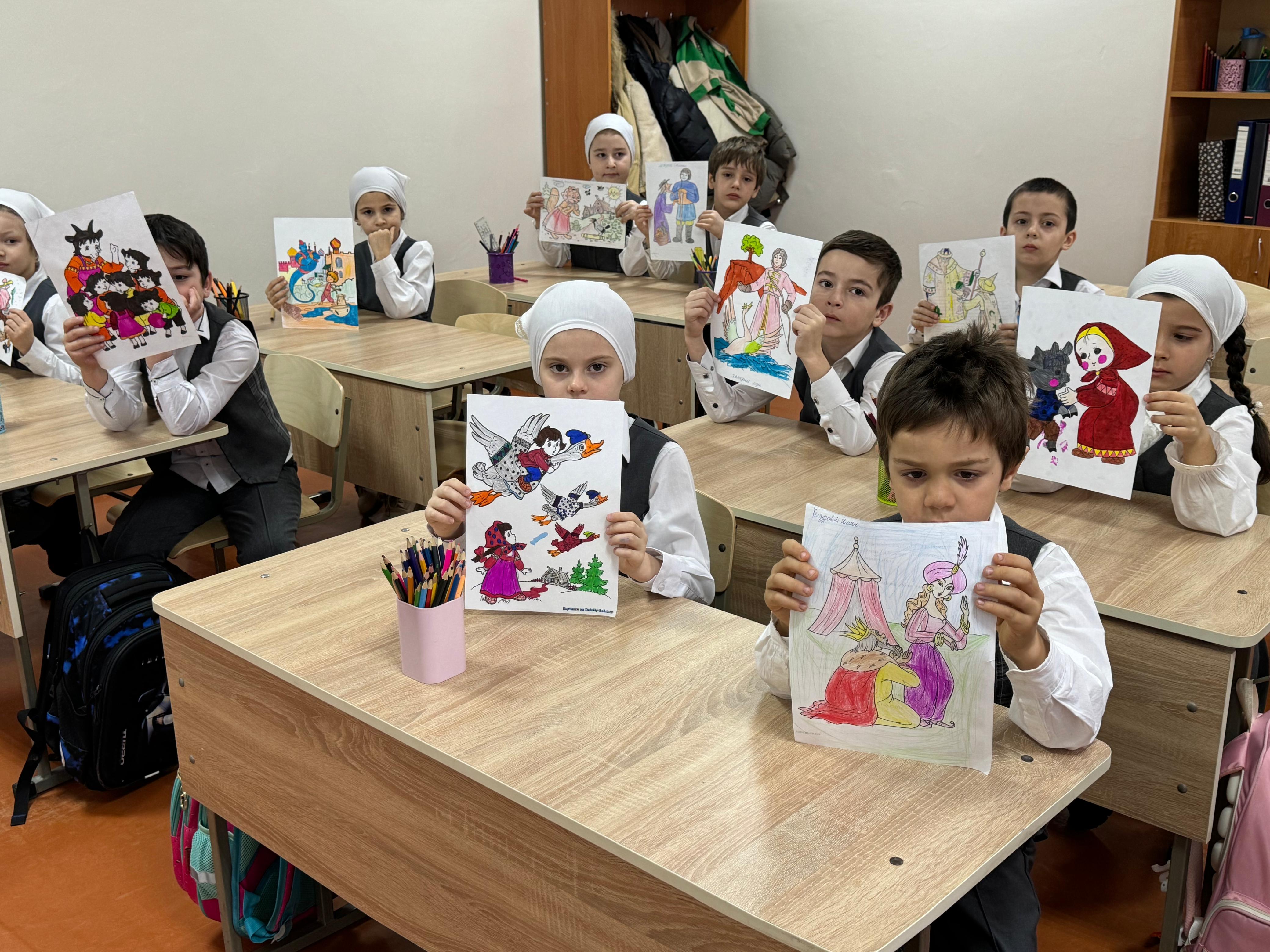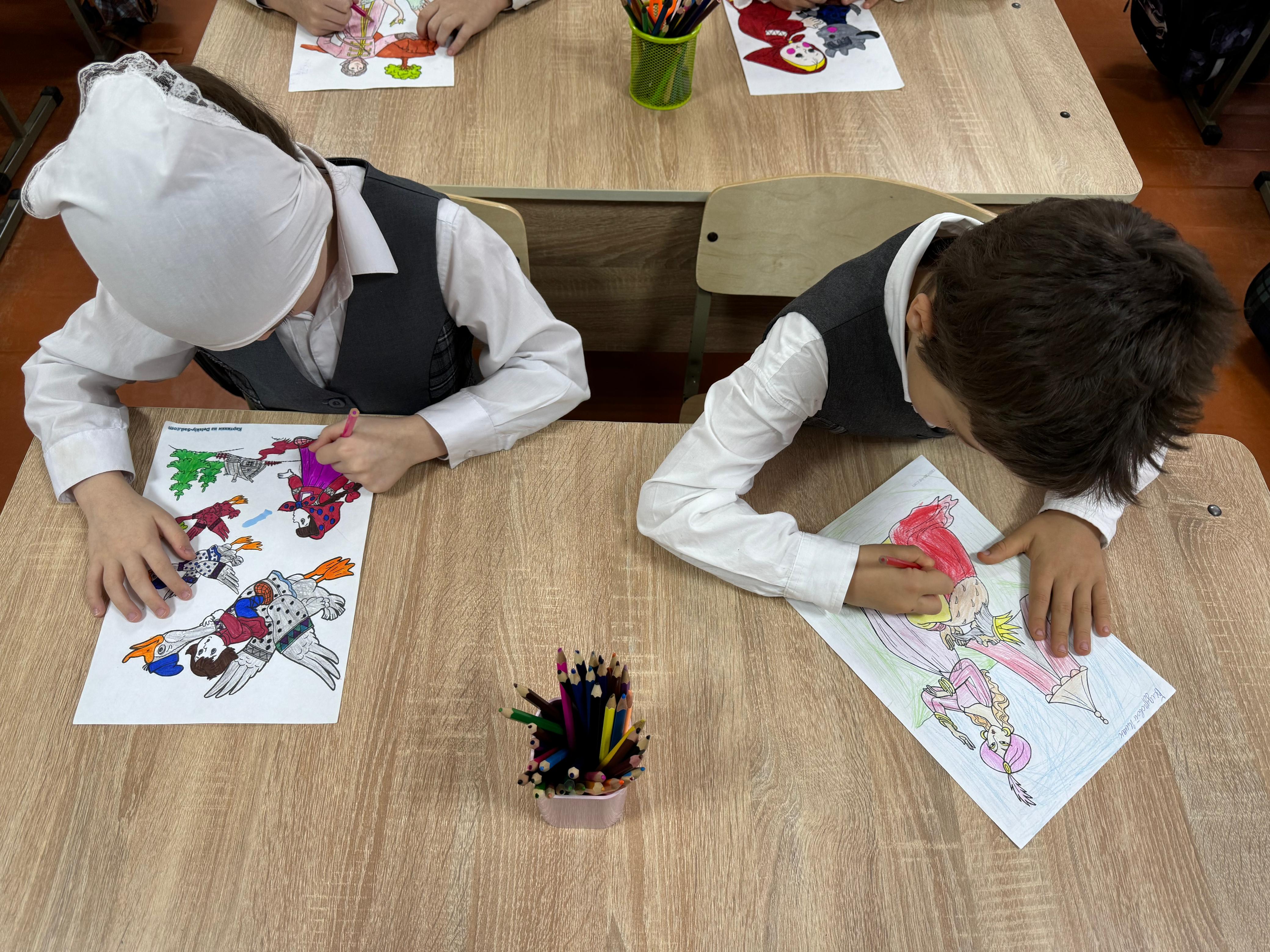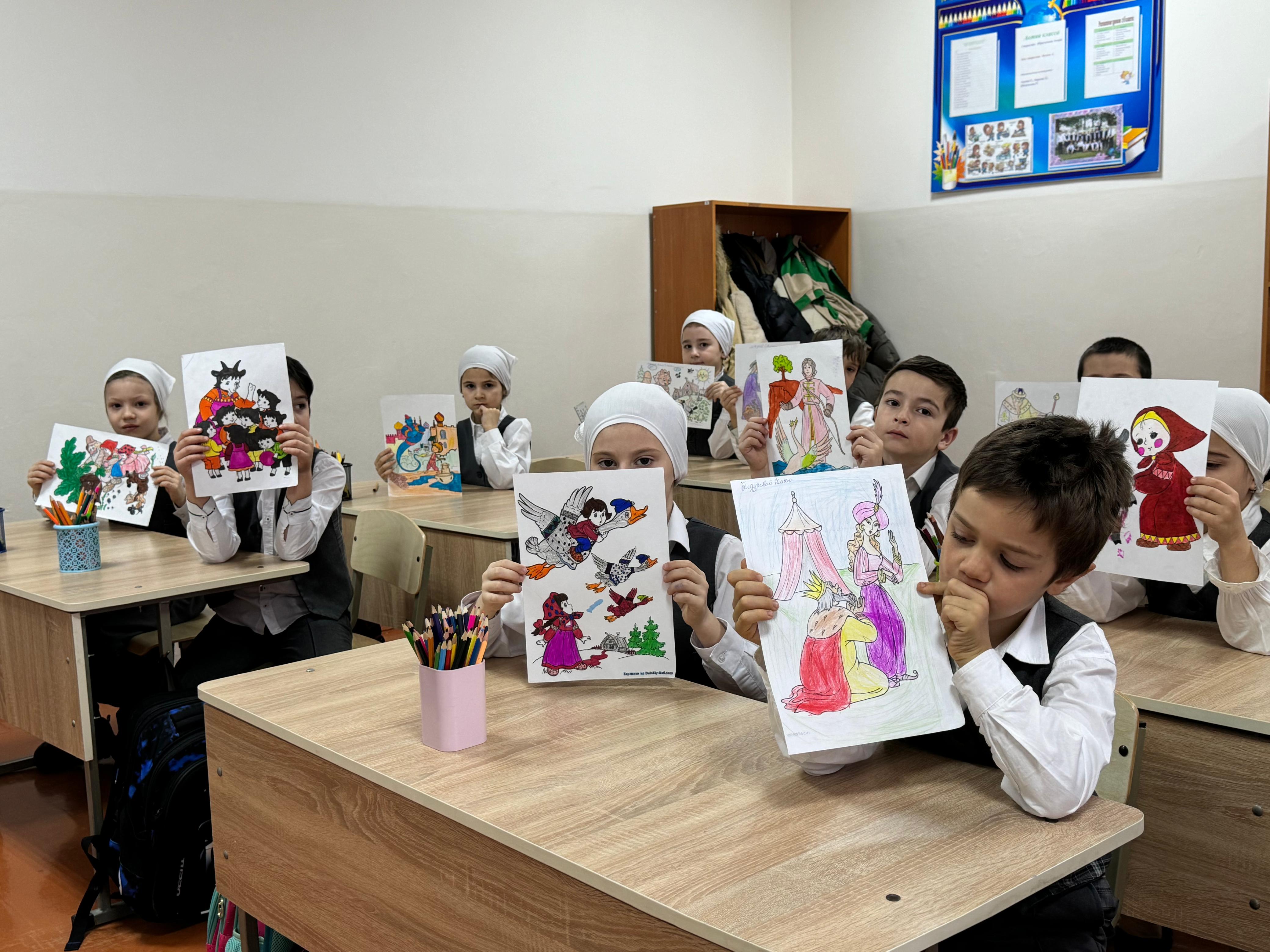 17 февраля в МБОУ «СОШ №4 с. Серноводское» прошёл урок изобразительного искусства по теме: «Моя любимая сказка» в 4 классе. Учитель Акуева Р.Х. поставила перед учениками цель — нарисовать персонажей из своих любимых сказок и изобразить сцену, которая им особенно запомнилась или нравится.