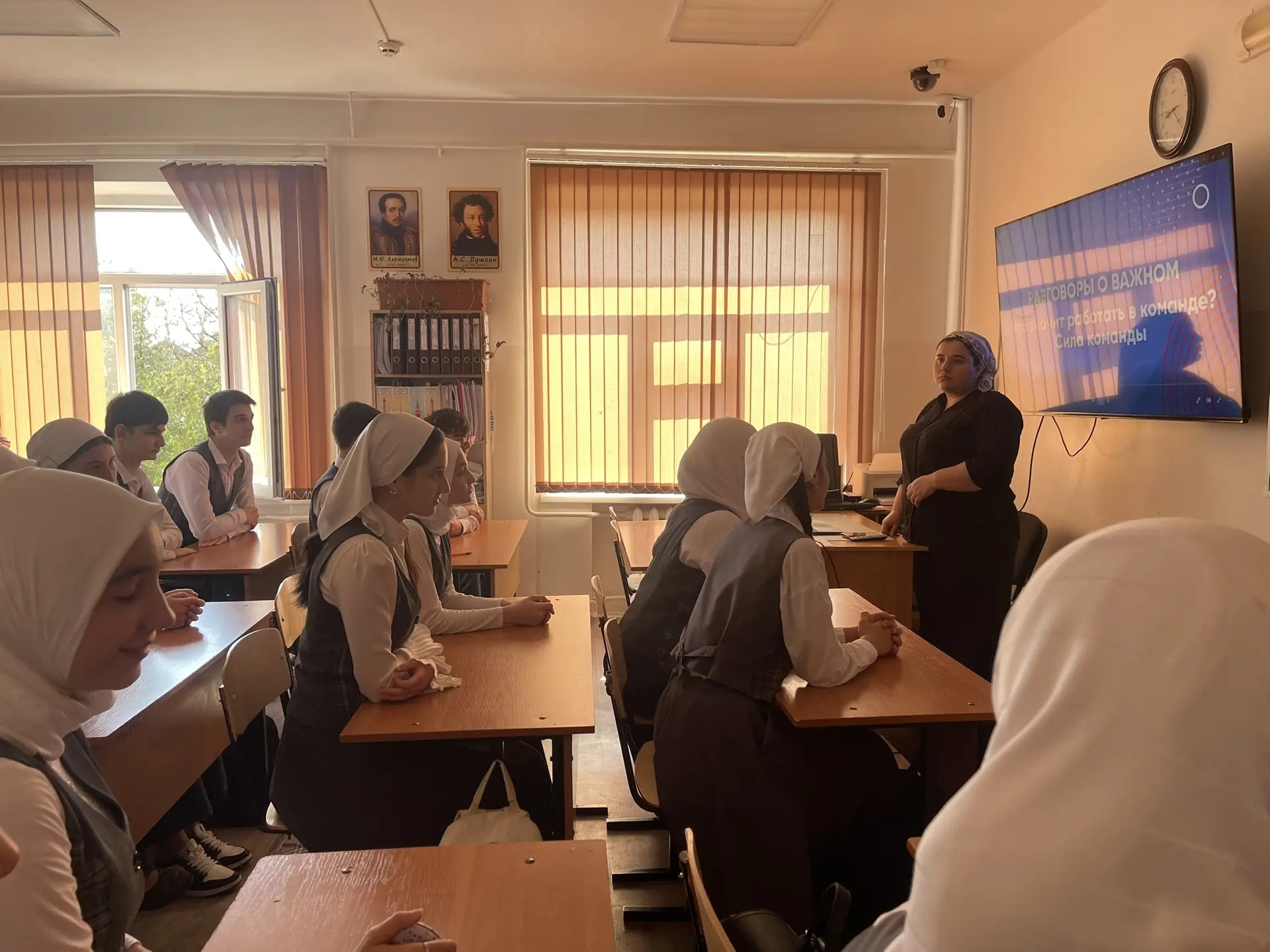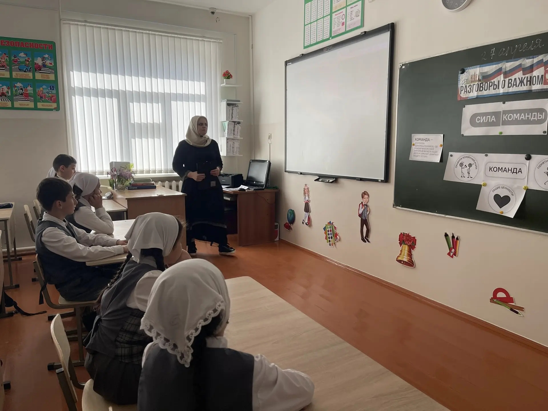 27 апреля в МБОУ “СОШ №4 г. Серноводское” было проведено внеурочное занятие в рамках проекта “Разговоры о важном” на тему: “Что значит работать в команде”.