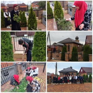 цветочные клумбы, собрали мусор, сухую листву с территории мечети,