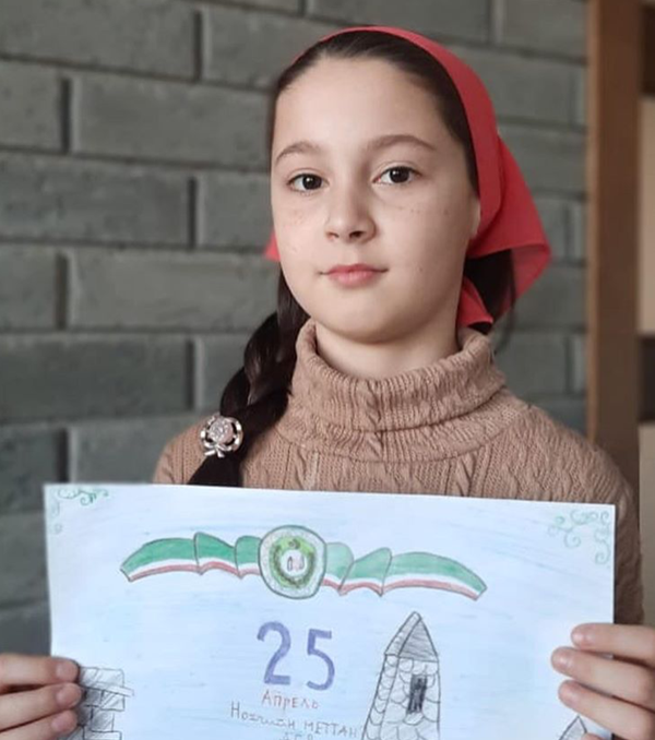 Конкурс рисунков ко Дню чеченского языка. Работа ученицы 5 «б» класса Шамаевой Мадины.