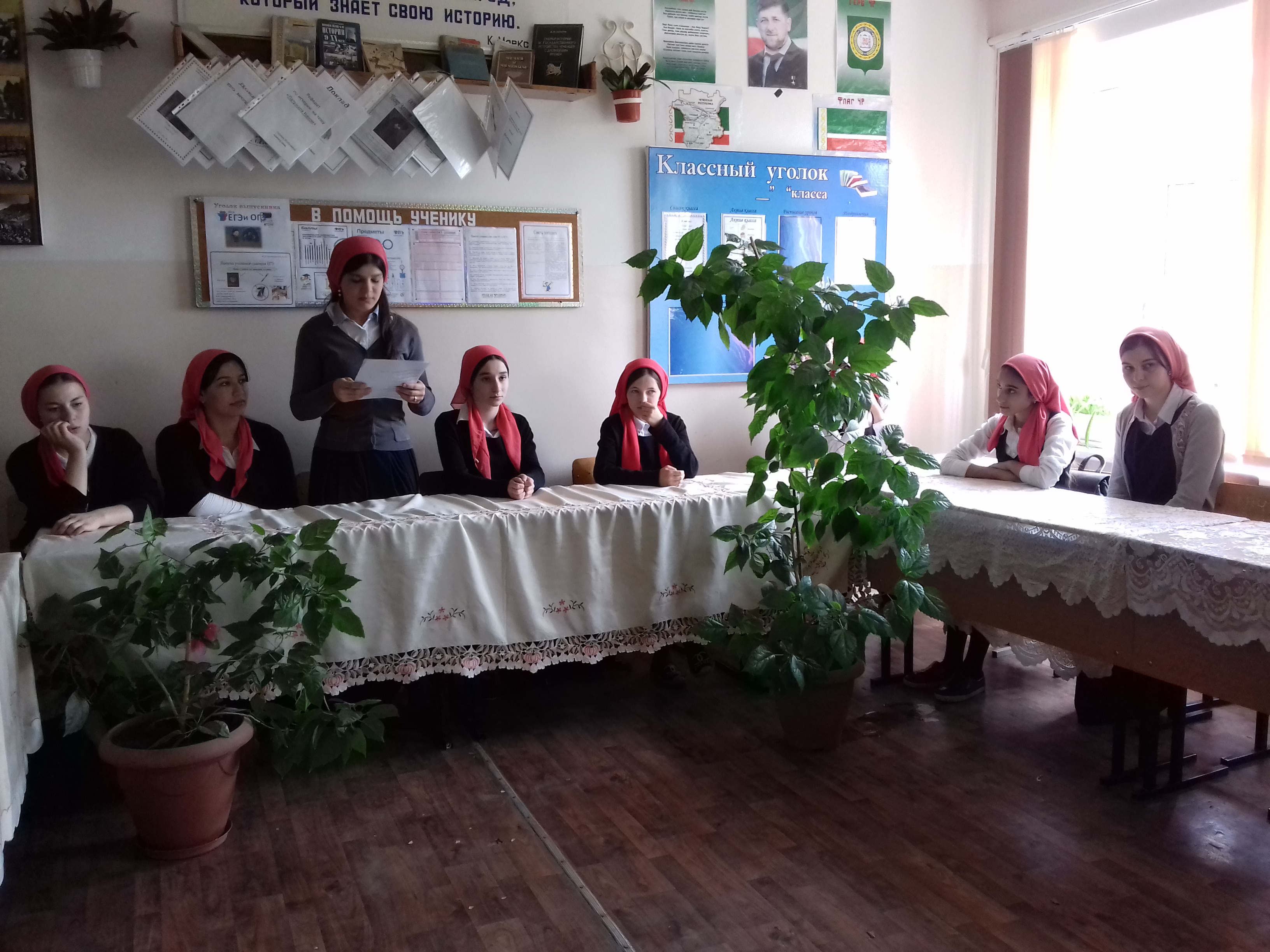 10.05.2016-10 мая 2016 года проведено внеклассное мероприятие в форме круглого стола на тему: ««Навечно в памяти людской», посвященный памяти Первого Президента Чеченской Республики, героя России А.Х.Кадырова. Участники мероприятия - обучающиеся 8 «в» класса в количестве 15 человек и классный руководитель Сегитова Л.Д.