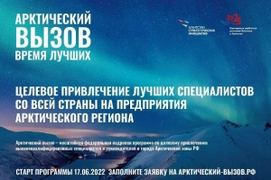 20.07.2022Стартовал прием заявок на участие в самой масштабной федеральной программе по привлечению высококвалифицированных кадров в инновационные проекты арктической зоны – «Арктический вызов».«Арктический вызов» предлагает профессиональное развитие тем, кто перерос свою должность, не может использовать весь свой потенциал на работе, любит сложные задачи, открыт новому и готов к приключениям.Первым траншем с трудоустройством до конца 2022 года Арктика ищет состоявшихся и молодых специалистов. Необходим опыт и навыки управления и организации комфортных условий труда по девяти направлениям:• Градостроительство и ЖКХ;• СМИ и информационные технологии;• Экономика и управление;• Медицина и здравоохранение;• Образование и культура;• Природопользование и экология;• Туризм и спорт;• Энергетика и промышленность;• Социальная сфера.Проект предлагает пройти три этапа отбора, проверить свои навыки и характер, получить работу мечты и стать новым героем Арктики.Оставить заявку и узнать больше о программе на сайте: https://арктический-вызов.рф/