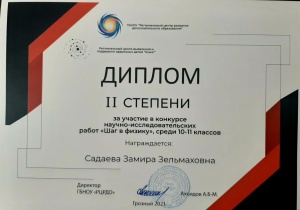 23.10.2021Региональным центром выявления и поддержки талантов "АХМАТ" среди школьников республики проведена научно-практическая конференция "Шаг в физику", в которой активное и победное участие приняли учащиеся Серноводского района.