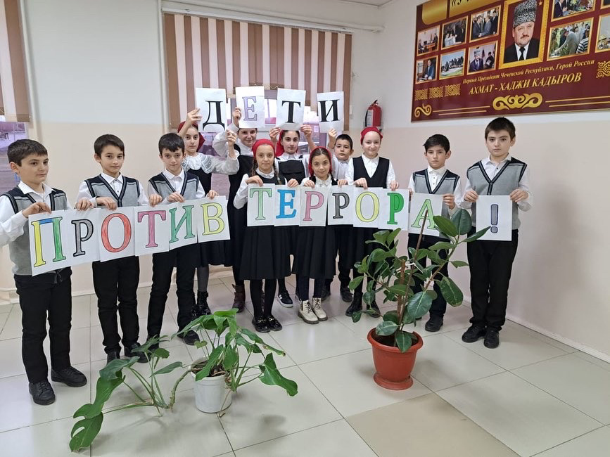 Классный руководитель Ульбиева Х. С-М. совместно с учащимися 5 «А» класса провела акцию «Дети против террора».