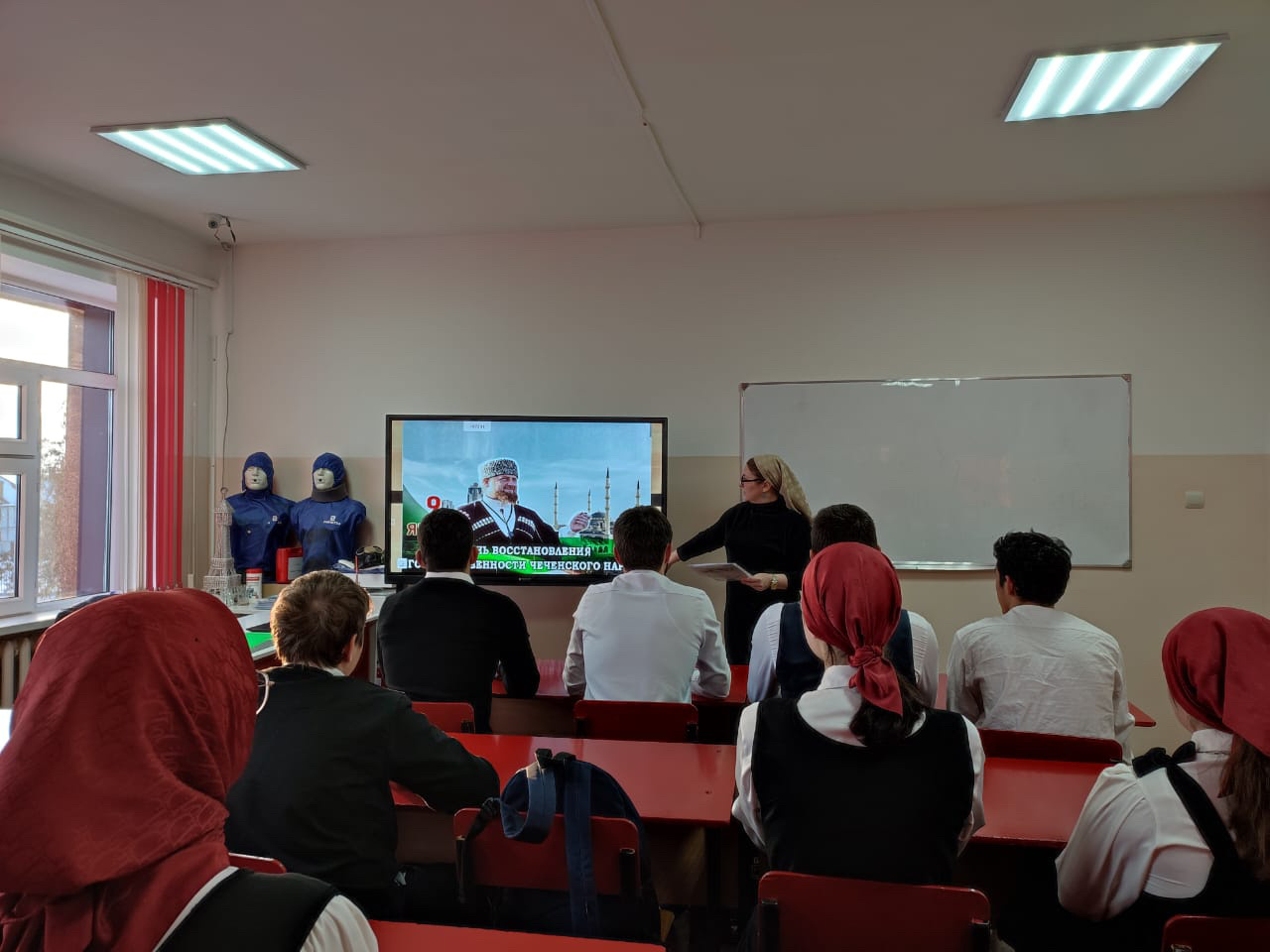 Учитель информатики Ахмадова Ровзан Ширвановна начала свой урок в 11а классе со слов: «9 января 1957 года был издан Указ Президиума Верховного Совета РСФСР «О восстановлении Чечено-Ингушской АССР и упразднении Грозненской области». Данный документ предусматривал снятие запрета на возвращение чеченцев и ингушей в места постоянного проживания. Восстановление Чечено-Ингушской АССР стало результатом сложных переговоров, в которых чеченцы и ингуши проявили всю свою настойчивость в отстаивании территориальных прав восстанавливаемой республики. Это событие дало возможность вайнахам вернуться на свою историческую Родину».