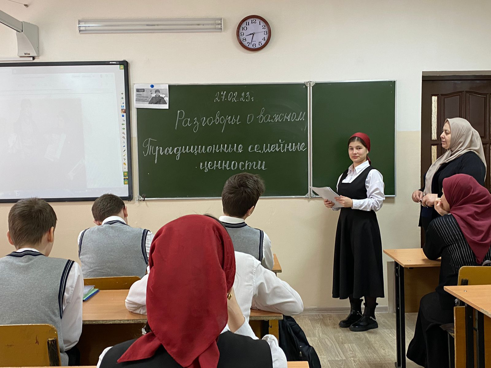 В целях эффективной реализации национального проекта «Образование», в рамках проекта «Разговоры о важном» в МБОУ «СОШ №4 с. Серноводское» 27 февраля 2023 года в 1-11 классах прошло внеурочное занятие на тему «Традиционные семейные ценности».