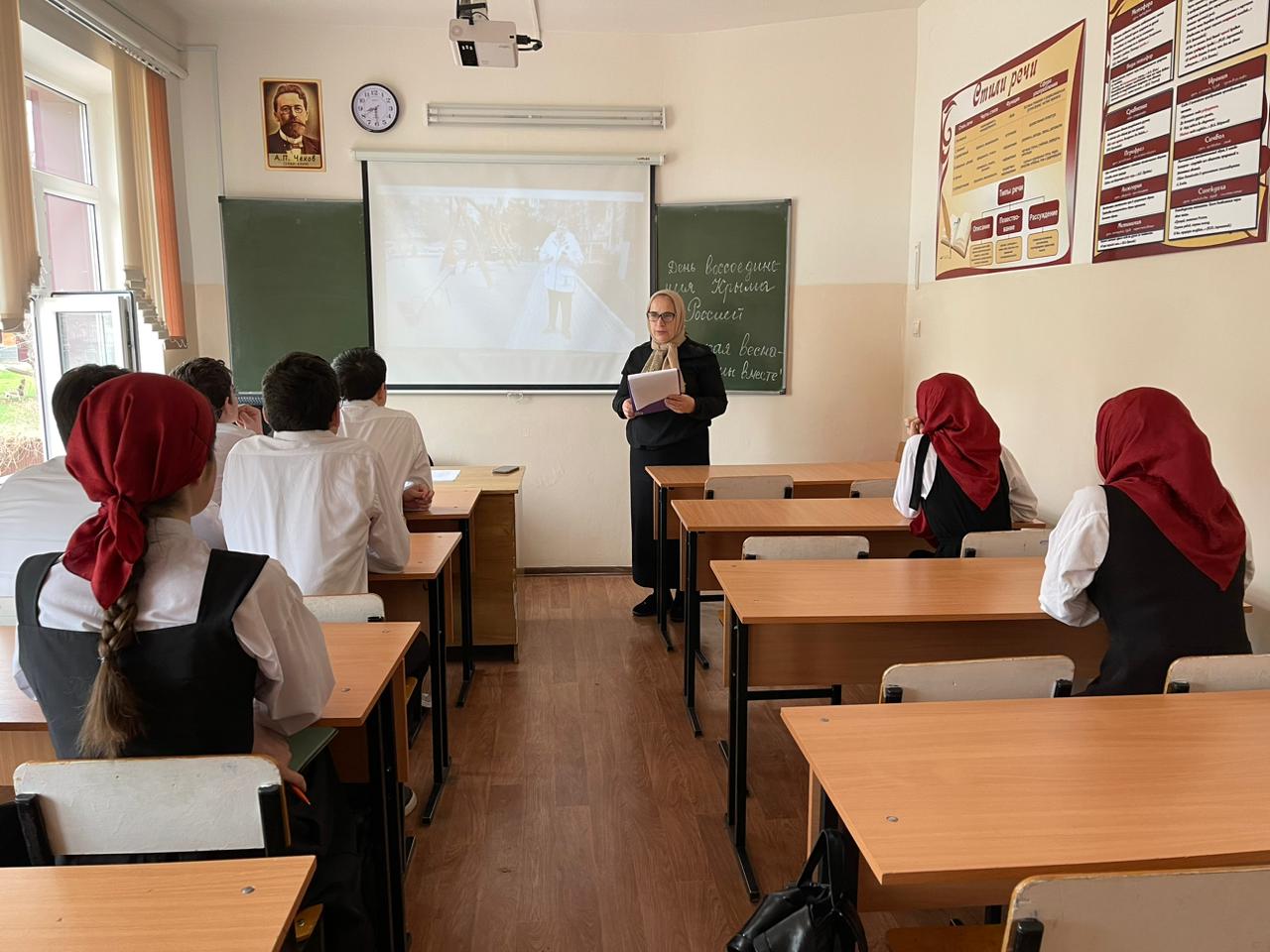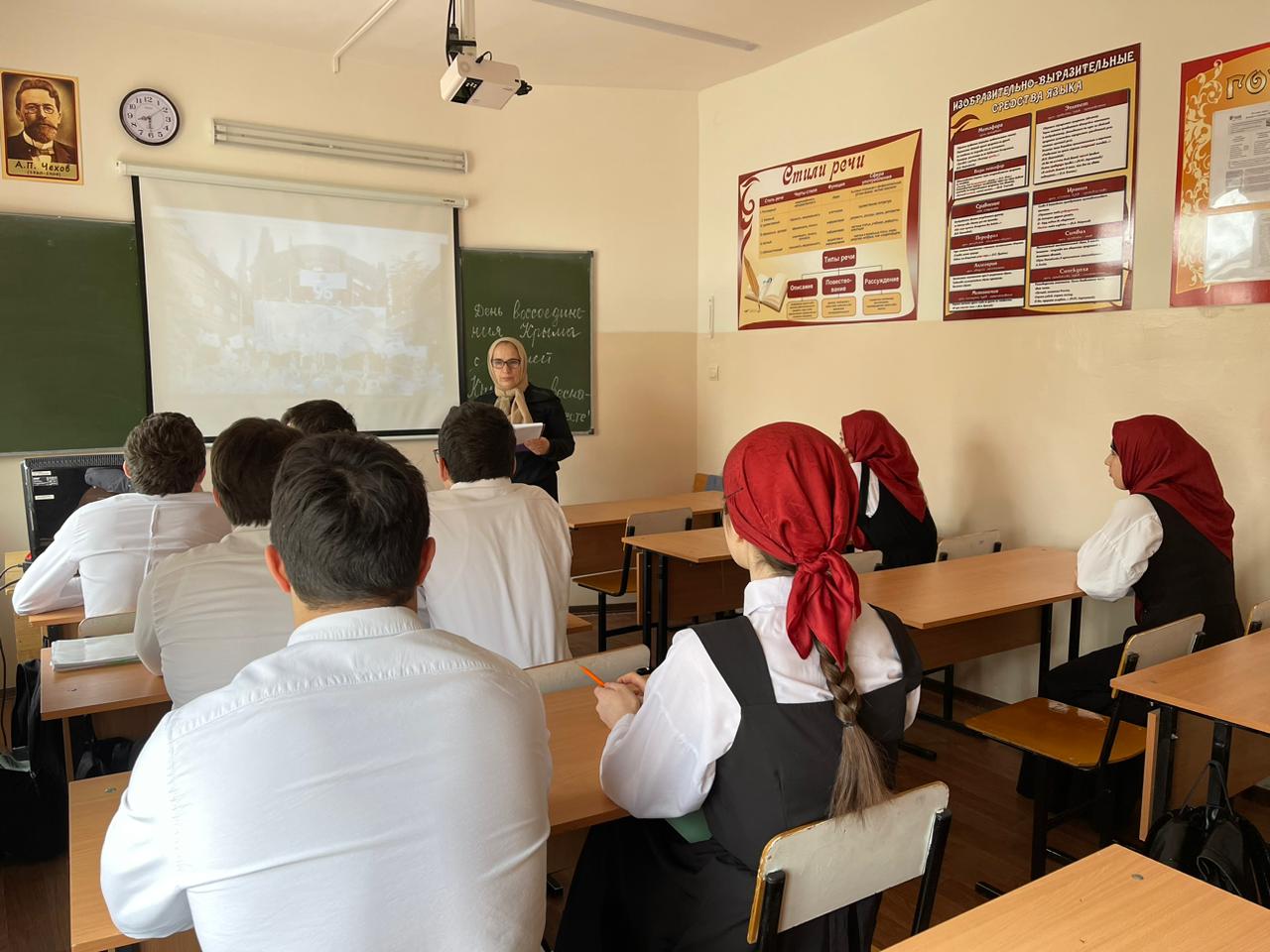 21.03.2023В целях эффективной реализации национального проекта «Образование», в рамках проекта «Разговоры о важном» в МБОУ «СОШ №4 с. Серноводское» 20 марта 2023 года в 1-11 классах прошло внеурочное занятие на тему «День воссоединения Крыма с Россией». Цель данного мероприятия: формирование у обучающихся представлений об истории Крыма как исконно русской территории; понимание причин и исторического значения воссоединения России и Крыма; формирование ценностей: жизнь, достоинство, права и свободы человека, патриотизм, историческая память и преемственность поколений. «18 марта 2014 года был подписан договор о вхождении в состав России двух новых субъектов Российской Федерации – Республики Крым и города федерального значения Севастополь. Россия и Крым – 9 лет вместе, точнее даже будет сказать – снова вместе, поскольку Крым с глубины веков связан с историей России,» - начала свой урок в 9в классе Музаева Пайзат Ахметовна. На занятии в 3а классе Эдиева Макка Руслановна отправилась с ребятами в «Путешествие по Крыму». Конечным пунктом назначения был лагерь «Артек». Она рассказала учащимся: «Сегодня в лагере «Артек» ребята не только отдыхают круглый год, но и занимаются по уникальным программам. Например, только закончилась смена «Штурманы книжных морей», которая была посвящена чтению книг. Её участниками стали более 2000 школьников из разных регионов России. А ещё мы с вами говорили, что именно «Артек» считается местом рождения Российского движения детей и молодёжи «Движение Первых». На внеурочном занятии учащиеся смотрели видеоролики с последующим обсуждением, выполняли различные интерактивные задания. Учащиеся отвечали на вопросы, обменивались мнениями. Шаипова Елена Аптыевна в 11б классе вспомнила с ребятами о героических страницах Великой Отечественной войны в истории Севастополя и всего Крыма. «Героическая оборона Севастополя стала одним из самых ожесточенных сражений Великой Отечественной войны. 250 дней город не сдавался, отбивая яростные атаки немецко-фашистских войск, всеми силами стремясь не допустить врага на нашу родную землю», - добавил Бахаев Акраман из 11б класса. «Прошло уже 9 лет с тех пор, как Крым вернулся домой. Сегодня крымчане уверены в завтрашнем дне, они – часть Великой державы. Воссоединение с Россией задало высокий темп развития Крыма и Севастополя. За это время построены дороги, мосты, аэропорты, жилье, школы, детские сады и больницы. Открыто железнодорожное и автомобильное движение, решены вопросы с водо- и электроснабжением. Реализованы проекты, которые невозможно было осуществить до воссоединения с Россией. «Русская весна», начавшаяся девять лет назад, вспоминается и празднуется каждый год. Этим праздником мы провозглашаем мир и единство России», - отметила Сулейманова Дашу Бексултановна, заместитель директора по ВР. Национальный проект «Образование» направлен на создание условий для воспитания духовно-нравственной, гармонично развитой личности, формирование эффективной системы выявления, поддержки и развития способностей и талантов у детей и молодежи, основанной на принципах справедливости, всеобщности и направленной на самоопределение и профессиональную ориентацию всех обучающихся. Данное мероприятие способствовало решению поставленных задач.