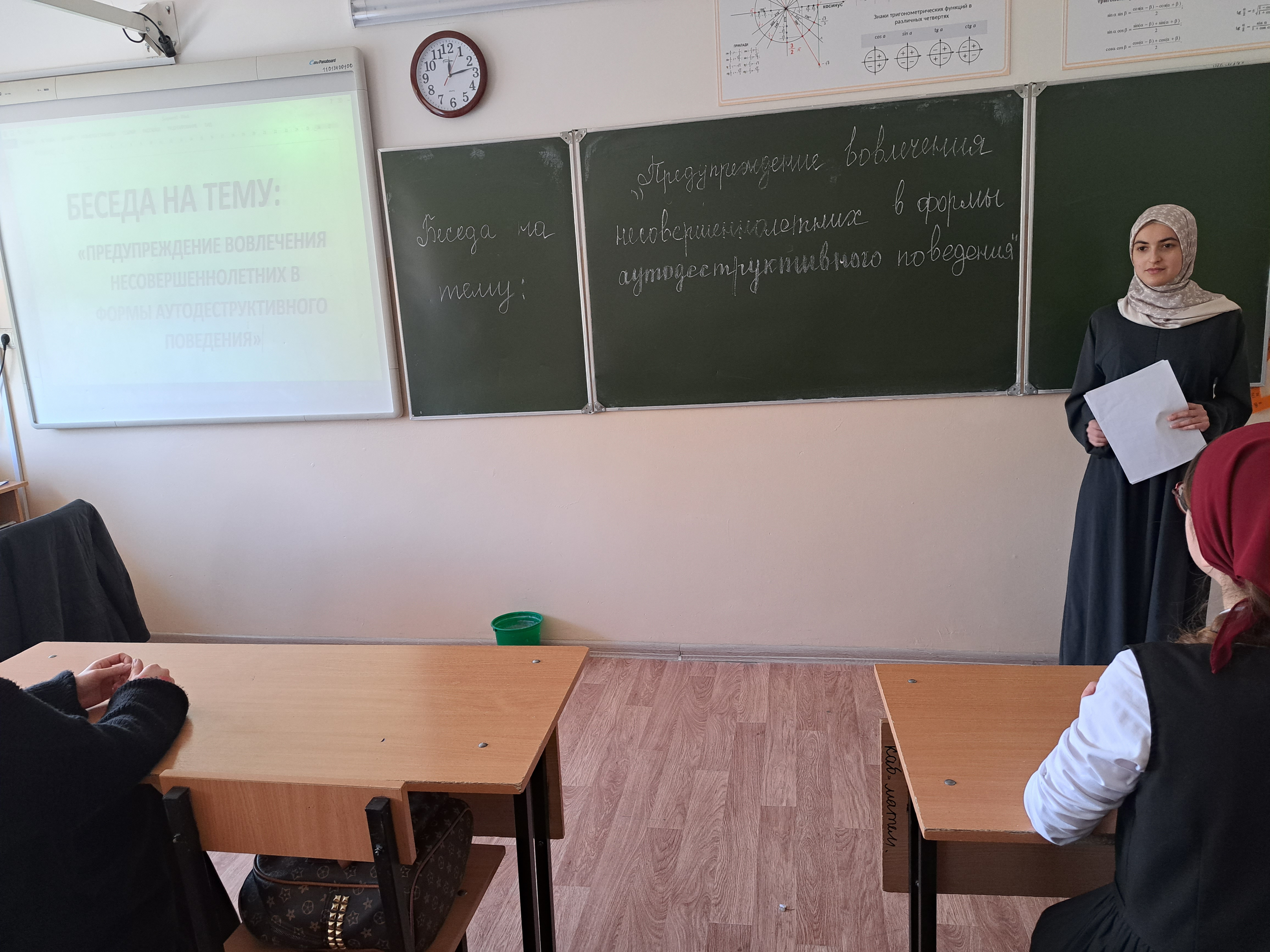 24.03.202324 марта 2023 года с целью профилактики и предупреждения в МБОУ «СОШ №4 с. Серноводское» с обучающимися 8-9 классов была проведена беседа на тему «Предупреждение вовлечения несовершеннолетних в формы аутодеструктивного поведения». Тема беседы была актуальной, дети получили ответы на все их интересующие вопросы.