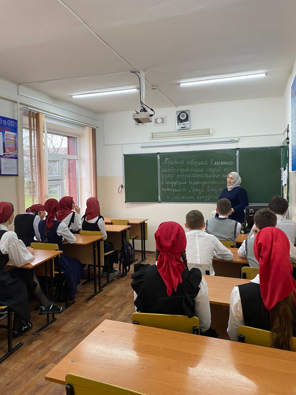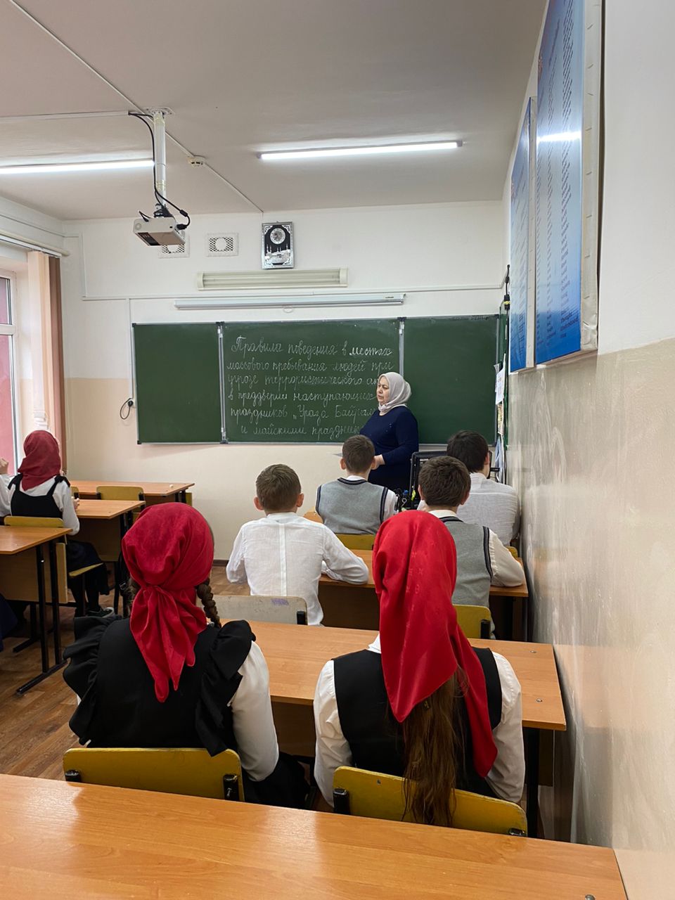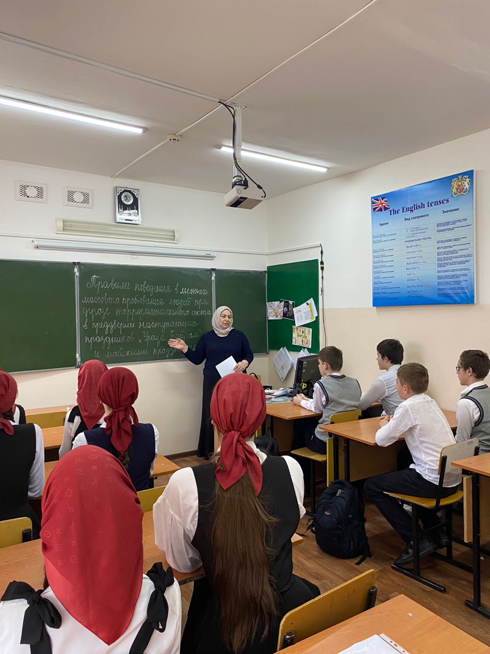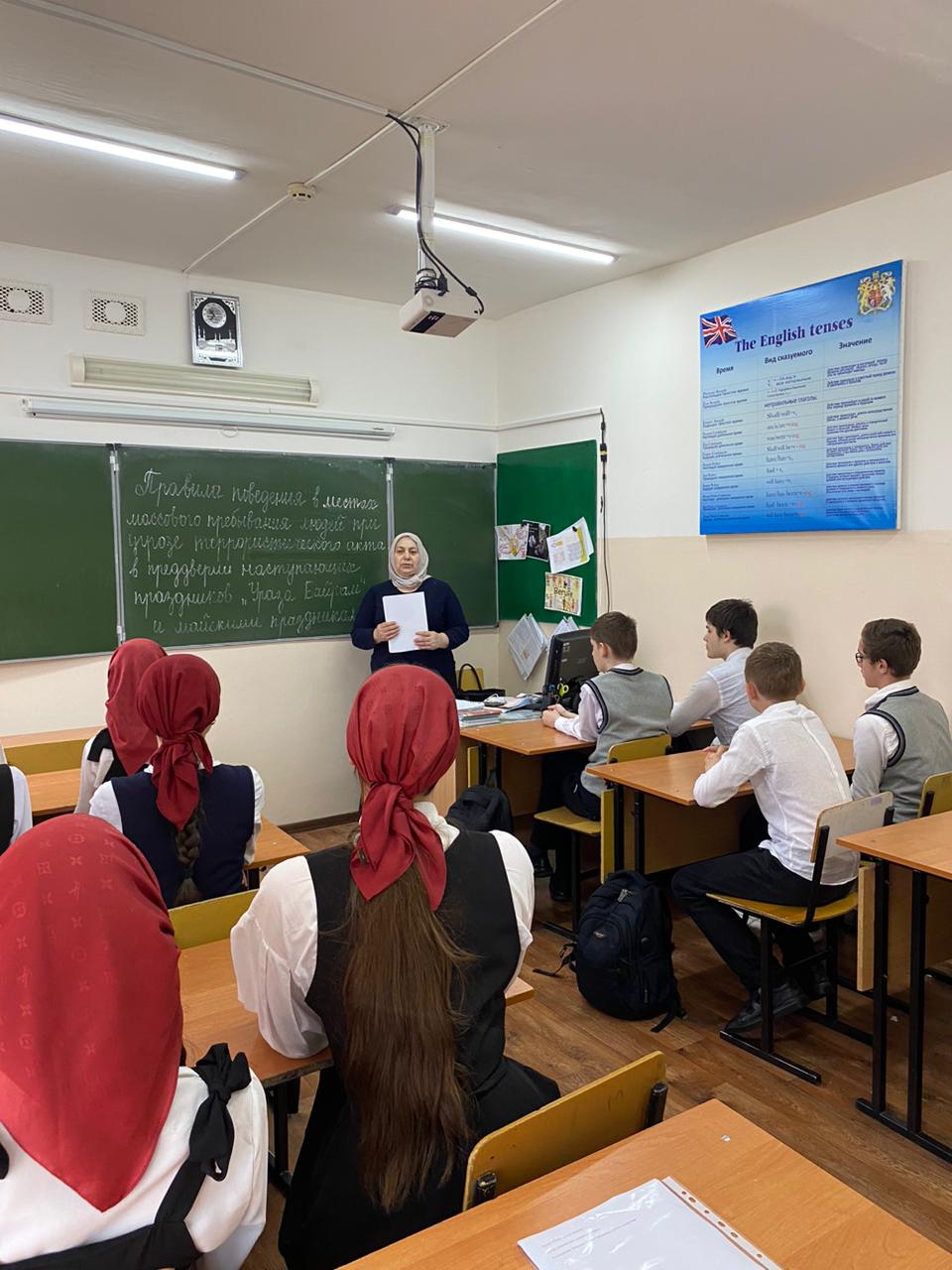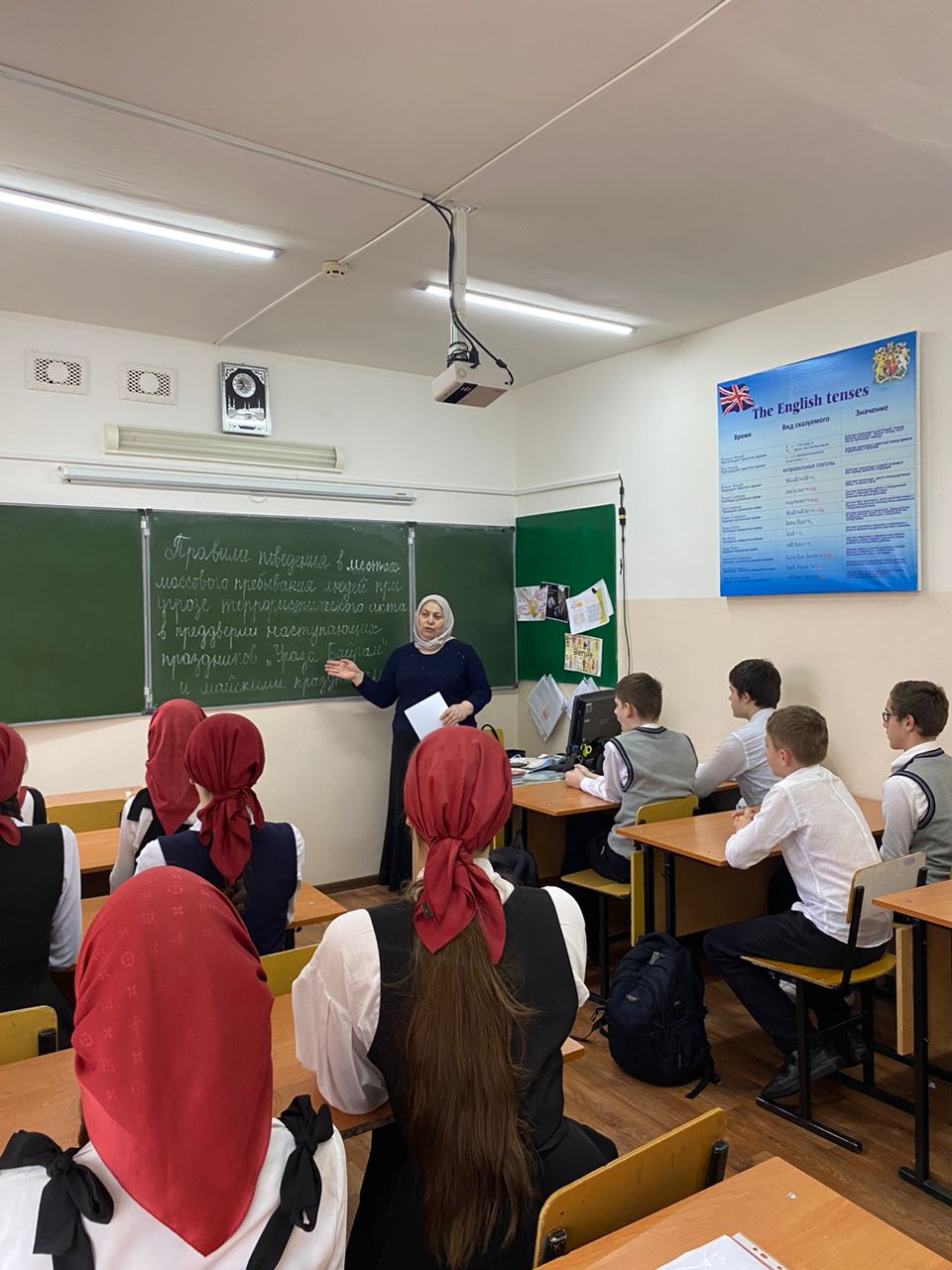 13.04.202313 апреля в МБОУ «СОШ№4 с.Серноводское» классный руководитель 8 А класса Хажиева З.Д. провела беседу с обучающимися 8-х классов на тему: «Правила поведения в местах массового пребывания людей при угрозе террористического акта в преддверии наступающего праздника «Ураза Байрам» и майских праздников».