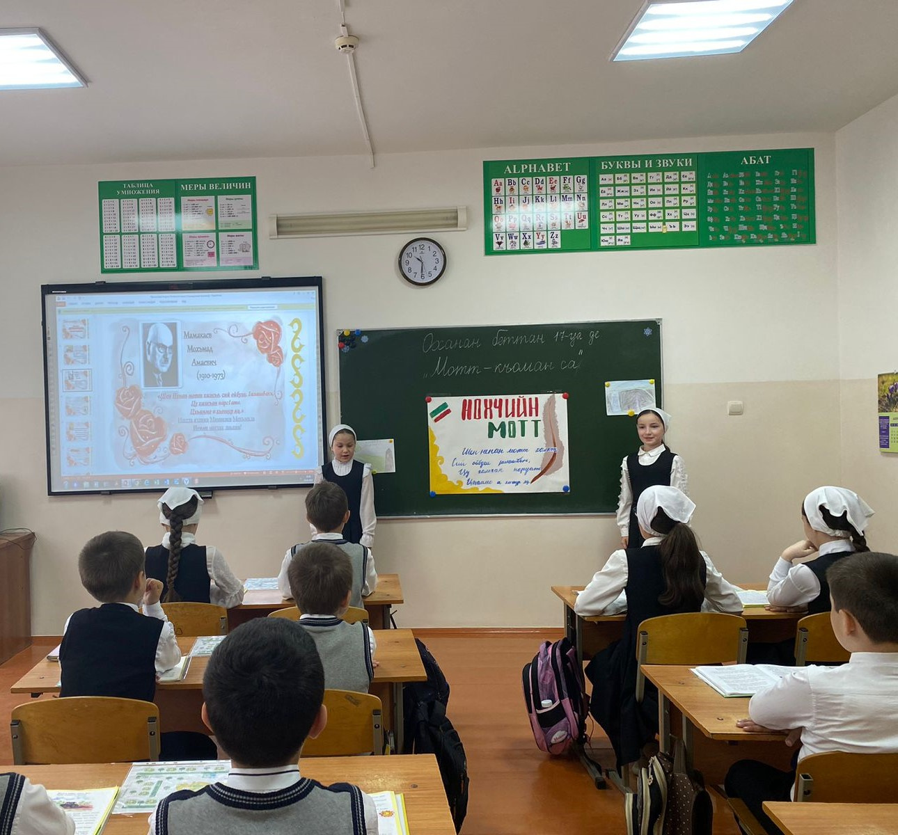 20.04.2023С 10 по 20 апреля в МБОУ «СОШ №4 с. Серноводское» проведена Декада чеченского языка и литературы. Декада предметов в школе – это особая атмосфера, пронизанная духом созидания, сотворчества, желанием поделиться собственными открытиями с окружающими; ожидание чего-то необычного, неординарного и интересного. Это показ достижений ребят по предмету, пропаганда знаний, привлечение к участию во внеурочной работе по предметам новых участников. В рамках Года педагога и наставника открытые уроки проводили и молодые педагоги школы. 19 апреля в 4а классе открытый урок чеченского языка провела учитель начальных уроков Магомадова М.Р. по теме «Къамелан дакъош. Ц1ердош». Урок соответствовал требованиям ФГОС. Учителем грамотно использовались различные приемы активизации учебной деятельности. Открытый урок литературного чтения на чеченском языке по теме «Жима Зарет» в 4б классе провела Эдиева М.Р. Занятие прошло в доброжелательной атмосфере. Молодой педагог показал высокий уровень профессионализма, умение реализовывать принцип сотрудничества в учебном процессе.