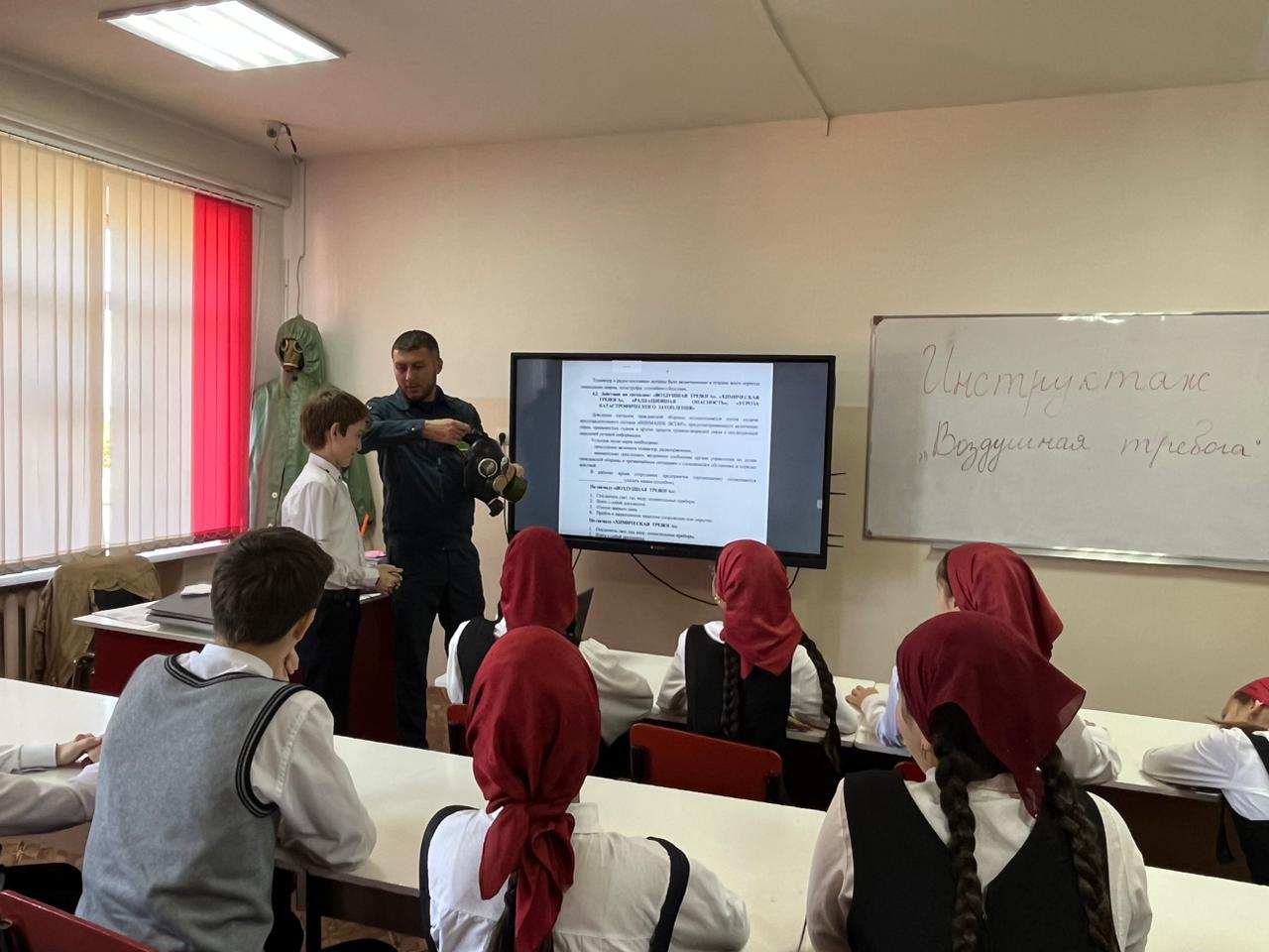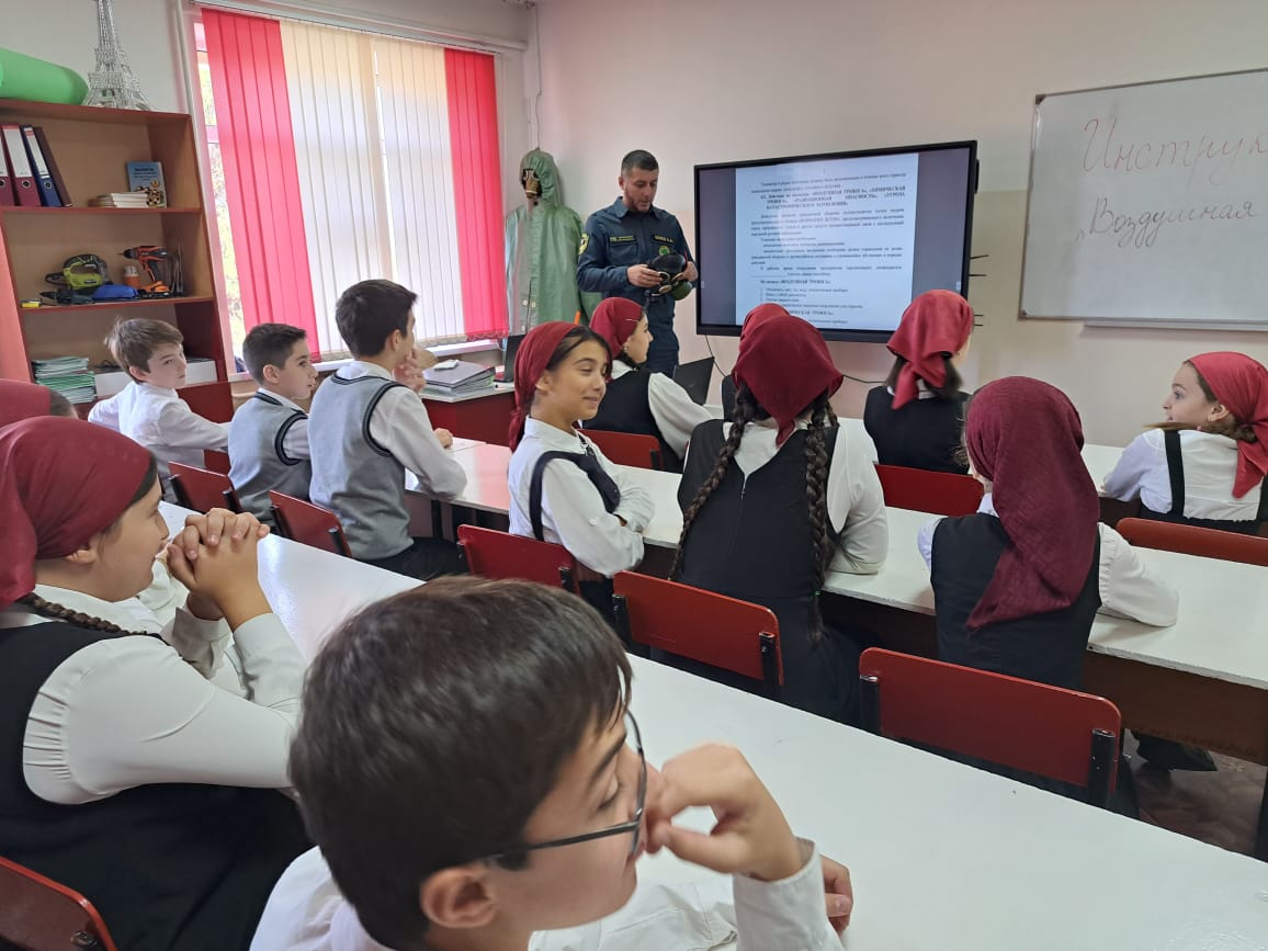 27.09.2023В целях эффективной реализации национального проекта «Образование» в МБОУ «СОШ №4 с. Серноводское» проведен инструктаж с сотрудниками и обучающимися по отработке действий по сигналу «Воздушная тревога». Цельинструктажа: обеспечение безопасности обучающихся и работников школы во время трудовой и учебной деятельности путем повышения безопасности жизнедеятельности, доведение до персонала основных требований к организации безопасного труда и соблюдению правил техники безопасности, ознакомление с алгоритмом действий при опасности иразвитие аналитического мышления и самостоятельной деятельности учащихся, внимательного отношения к жизни и здоровью. Начальник караула ПЧ -16 ГКУ «ГПС ЧР» Алиев Анзор Адланович сказал: «Инструктаж является неотъемлемой частью нашей системы безопасности, и мы убеждены, что правильная реакция на такие ситуации способна спасать жизни и обеспечить безопасность всех воспитанников и сотрудников образовательной организации». Учитель ОБЖ Газмагомадова Марха Хасановна отметила: «Звуковой сигнал «Воздушная тревога» мы должны хорошо знать, он указывает на возможную опасность со стороны воздушной тревоги. Поэтому нам были предоставлены примеры данного сигнала с целью его распознавания, продемонстрированы маршруты эвакуации и выходы из помещений в случае сигнала "Воздушная тревога". Заместитель директора по воспитательной работе Сулейманова Дашу Бексултановна сказала: «В случае невозможности покинуть помещение, мы получим инструкции о правильном укрывании и защите в специально предназначенных убежищах, увидим примеры того, как правильно использовать укрытия и обеспечить безопасность. Призываю всех сотрудников и обучающихся школы принимать инструктаж по отработке действий по сигналу "Воздушная тревога" всерьез и приступать к его выполнению немедленно!» Заместитель директора по учебной работе Хажиева Зура Джунидовна подтвердила: «Защита наших воспитанников - наш главный приоритет, и только совместными усилиями, слаженностью действии мы сможем обеспечить безопасность и гарантировать спокойствие нашим детям. Будьте бдительны и проявляйте ответственность!»