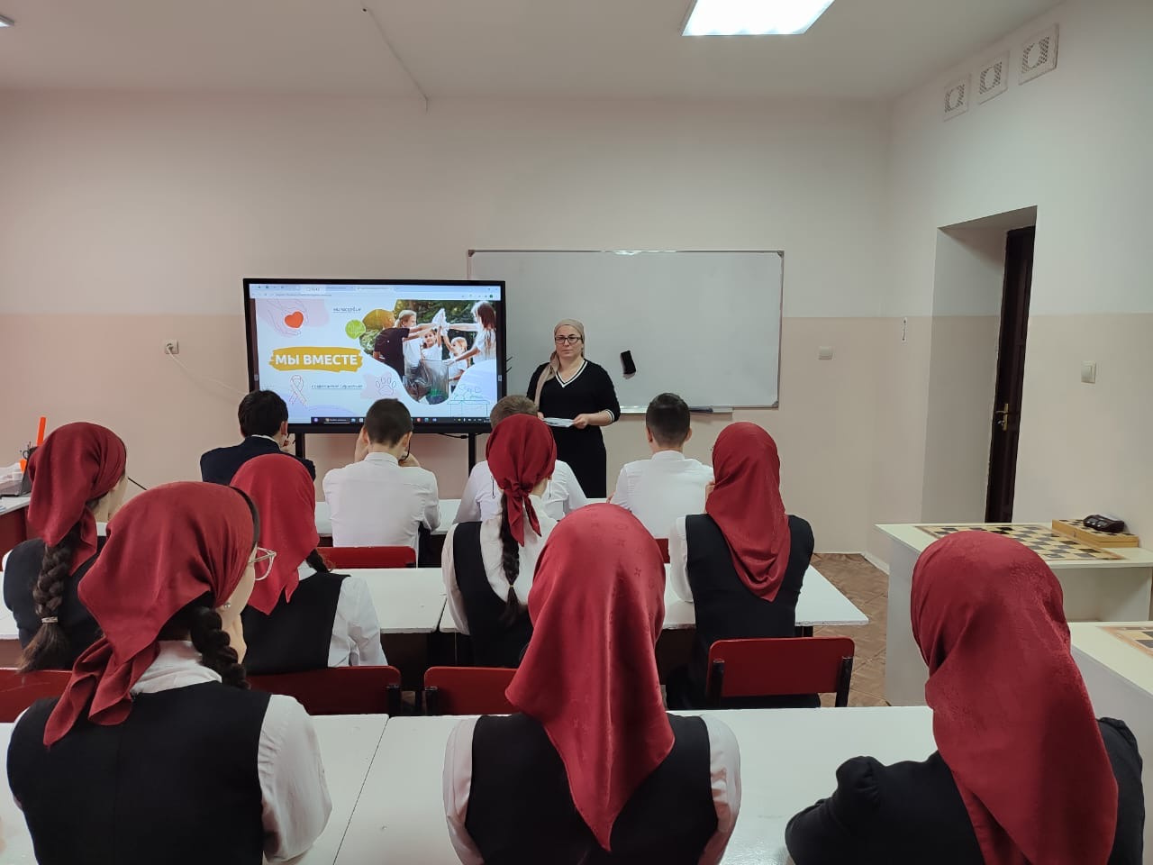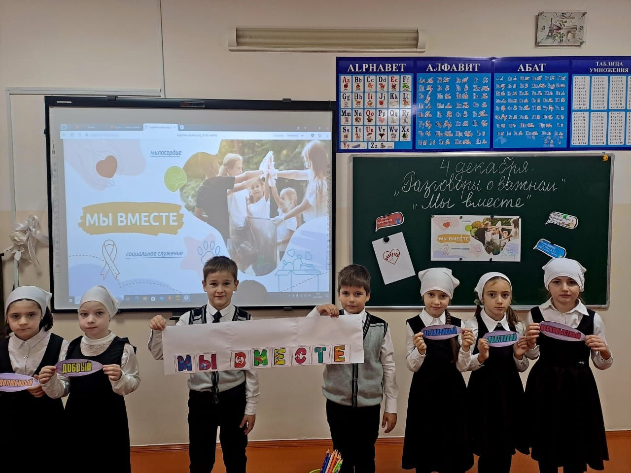 04.12.2023В рамках реализации программы внеурочной деятельности «Разговоры о важном» 4 декабря 2023 года в МБОУ «СОШ№4 с.Серноводское» состоялось занятие «Мы вместе», приуроченное празднованию Дня волонтера, который отмечается 5 декабря с 2017 года. Во время занятия обучающиеся обсудили значение и содержание волонтерской работы, чем занимаются волонтеры и какие виды волонтерской деятельности существуют. Также ребята познакомились с проектами российских общественных движений, в которых они могут принять участие.В наши дни волонтерские инициативы получили поддержку государства, добровольческое движение стало масштабным и повсеместным. Волонтерство выступает формой реализации взаимопомощи и нормой жизни современного российского общества. Участие в волонтерском движении дает детям возможность реализовать себя в различных сферах, воспитывает ответственное отношение к окружающему миру.