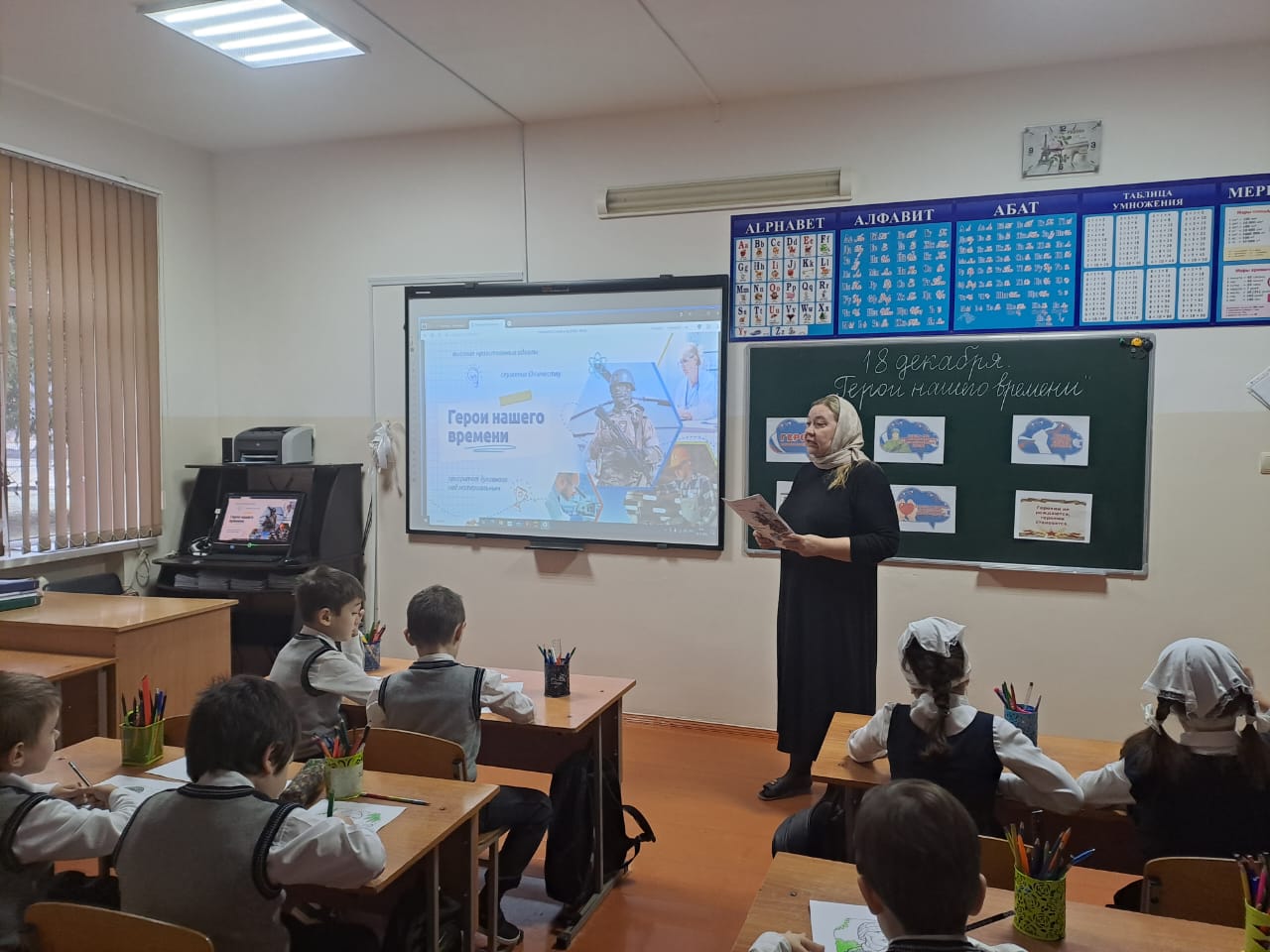 11.12.202311 декабря 2023 года в МБОУ «СОШ No4 с.Серноводское»Серноводского муниципального района , в целях укреплениядуховных ценностей, сохранения памяти о героическомпрошлом России прошел исторический час «Герои нашеговремени», подготовленный учителем начальных классовХазаевой Лолитой Маулатовной. В рамках празднования ДняГероев Отечества учитель начальных классов, ЛолитаМаулатовна провела исторический час во 2 классе на тему:«Герои нашего времени» Ребята познакомились с историейвозникновения праздника. Узнали имена славных героев-орденоносцев со времен Отечественной войны 1812 г., Первоймировой войны, Великой Отечественной войны 1941–1945 гг., атакже и о героях нашего времени. Рисовали своих героев,читали стихи, рассказывали о подвигах героев Отечества,проявивших доблесть и отвагу на полях сражений, ивосхваляли тех героев, кто проявил мужество и бесстрашие вмирное время, твердость духа и свою гражданскую позицию.Лолита Маулатовна отметила: «Сегодня мы узнали, чтоблагодаря Героям, этим самоотверженным людям, мы живемпод мирным небом, узнали, что такое настоящая любовь кРодине. Мы гордимся нашими Героями, совершившимигероические поступки и хотим быть такими же отважными ибесстрашными. Следует помнить и знать не только героевпрошлого, но и тех, кто живет в настоящем, тех, кто отдаетжизнь будущим поколениям. Только тогда мы сможем стать по-настоящему великой державой, достойной всех своих героев.