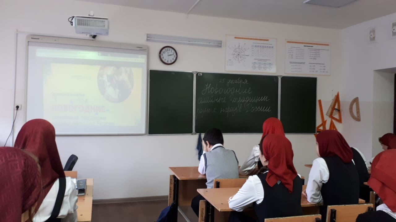 25.12.2023 г. в МБОУ "СОШ №4 с. Серноводское состоялся урок Разговоры о важном на тему: Новогодние традиции разных народов России.