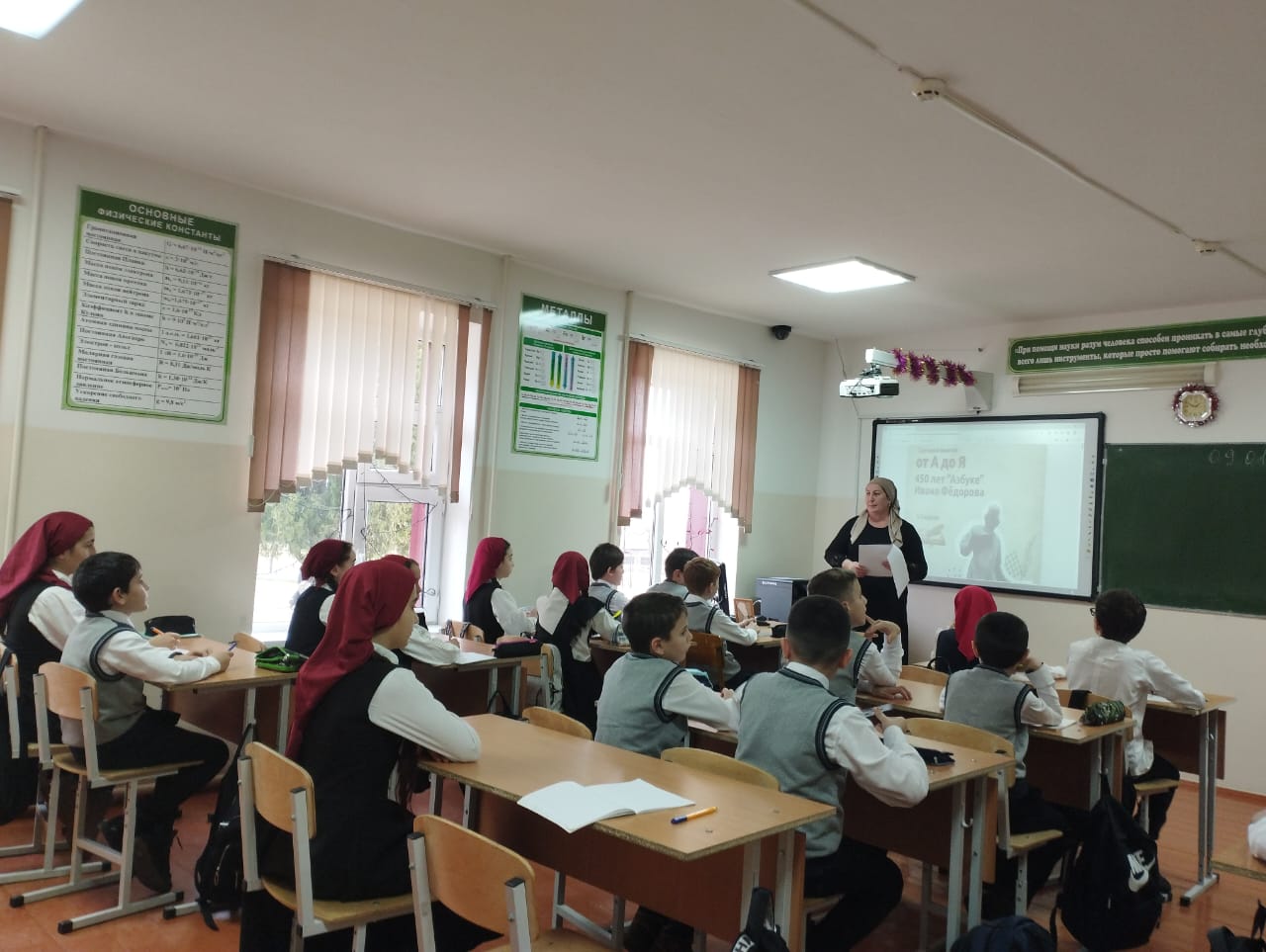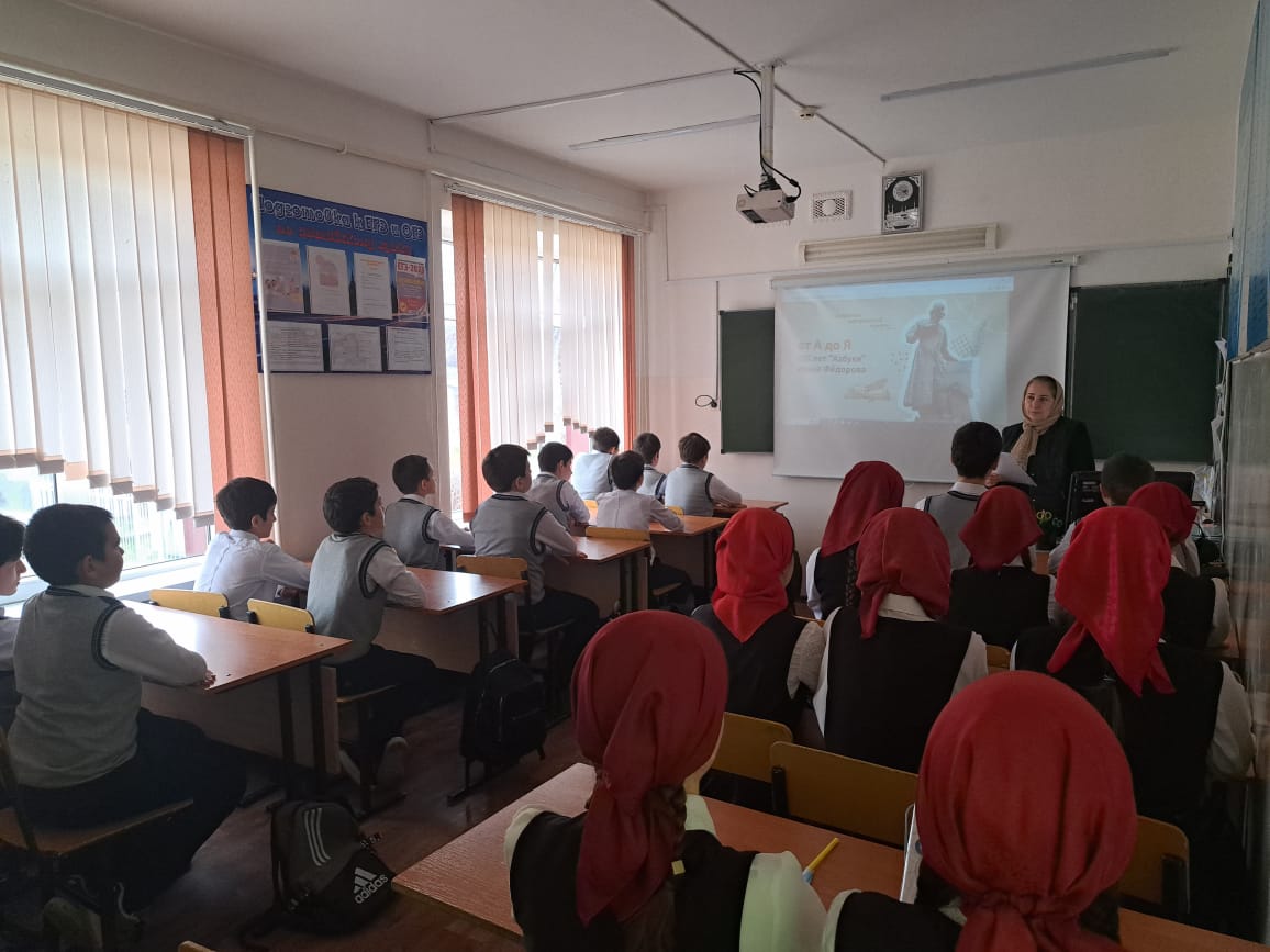 09.01.2024 года в МБОУ «СОШ №4 с. Серноводское» прошел урок Разговоры о важном на тему: "От "А" до "Я". 450 лет "Азбуке" Ивана Федорова"