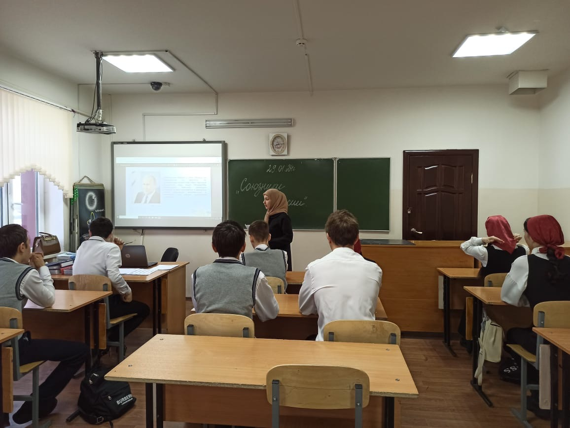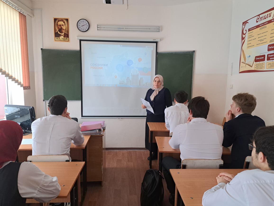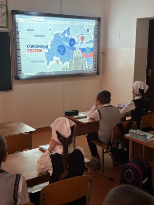 29.01.202429 января в МБОУ «СОШNo4 с.Серноводское» проведеноочередное внеурочное занятие "Разговоры о важном", на тему"Союзники России".Цель занятия: познакомить с понятиями союзник, дипломат, подвестиобучающихся к пониманию того, что союзники России, - это страны илюди, с которыми у нас общие ценности, цели и мировоззрение;воспитать чувство любви и уважения к своей Отчизне.Ребята просмотрели видеоролики, узнали о том, кто такой дипломат,какие страны являются основными союзниками России., проработали сцитатами Президента России В. В. Путина и Министра иностранных делС. В. Лаврова. Так же ученики выполняли задания "Дипломатическогокейса", где смогли почувствовать себя в роли дипломатов.