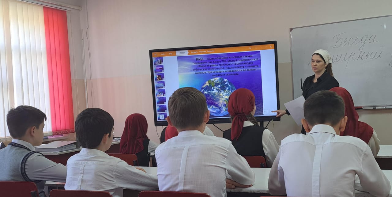 02.04.2024Ежегодно 22 марта во многих странах мира отмечается Всемирный день водныхресурсов или Всемирный день воды.В рамках Всемирного Дня воды в МБОУ «СОШNo4 с.Серноводское» в 1-6 классахпрошли беседы, просмотры презентации «Волшебница вода», конкурсы рисунков,флэшмоб , раздача буклетов. В ходе беседы дети работали с картами и глобусом,вспомнили как много воды на нашей планете, сколько места занимает вода, а сколько –суша, что дождь, град, снег, росы, пар, сосульки, туман — это тоже вода, только вразличных своих состояниях. Ребята раскрыли тайны водного мира и узнали многоинтересного о воде, отвечали на вопросы задания, отгадывали загадки о воде, вспоминалипословицы и поговорки.22 марта проведена выставка рисунков «Берегите воду!», который еще раз напомнилвсем нам о том, что вода – это источник жизни на Земле.22 марта проведен флешмоб «Голубая лента», в которой приняли участие учащиеся6 класса. Символом акции стали ленты голубого цвета. А также раздавали буклетыжителям села.Есть много причин, чтобы считать воду дороже золота и нефти. На сегодняшний деньпроблема экономии чистой воды актуальна, как никогда. Только объединившись, мысможем сберечь «голубое золото» нашей планеты!Итогом проведённых мероприятий стало то, что дети узнали о причинах загрязненияводоемов и мерах их охраны, научились бережно относиться к воде и экономить ееежедневно как в школе, так и дома.