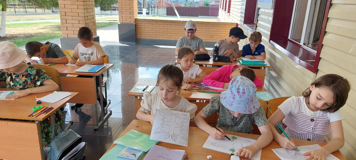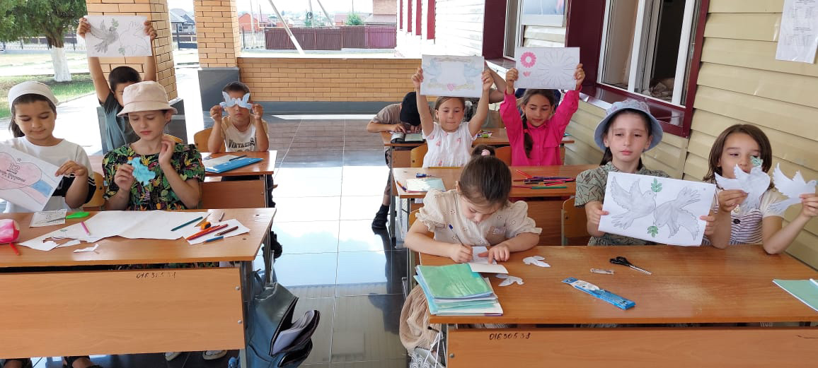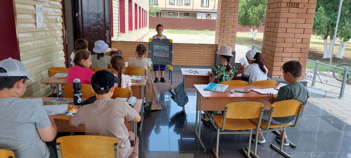 В МБОУ "СОШ №4 с. Серноводское" на летней пришкольной площадке продолжаются занятия первой смены в группе "Мастерилка". Сегодня прошло занятие, посвященное Дню России. Руководитель смены - Джантаева М.В.