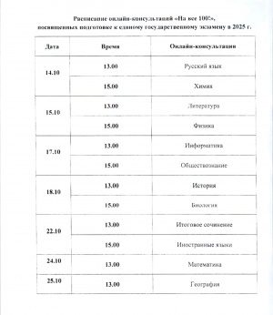 Управление организации и проведения государственной итоговой аттестации (далее - Управление) сообщает, что в рамках проведения информационно-разъяснительной кампании Федеральная служба по надзору в сфере образования и науки (Рособрнадзор) проводит серию онлайн-консультаций «На все 100!» (далее - консультации). Консультации посвящены подготовке к единому государственному экзамену в 2025 году. Они пройдут в период с 14 октября по 25 октября 2024 года в 13:00 и в 15:00 по московскому времени на официальных