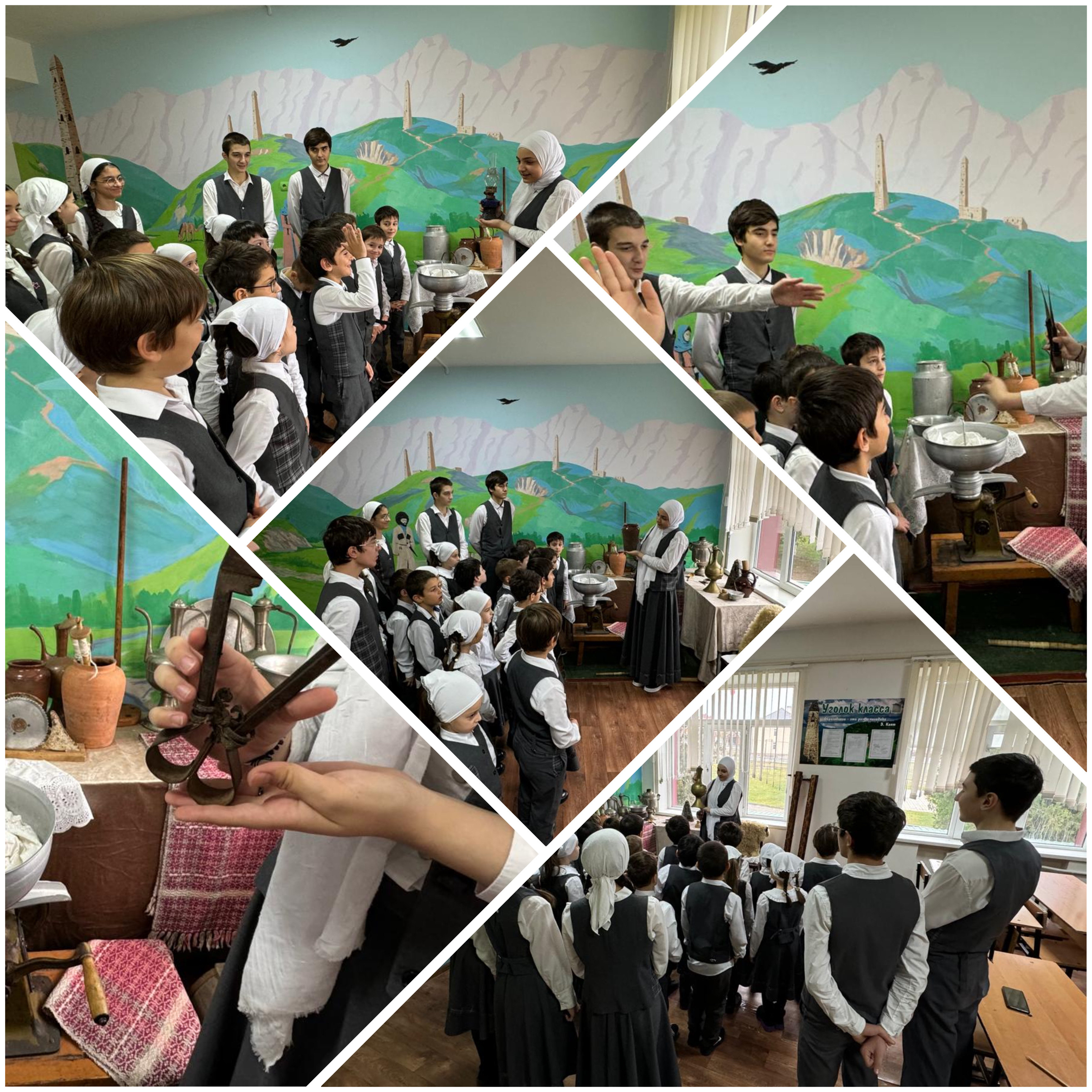 26.11.2024Патриотическое воспитание начинается с любви к малой Родине,уважительного отношения к ее истории. Совет музея принимает активноеучастие в разработке и проведении экскурсий и встреч. В стенах музеяпроводятся музейные уроки, уроки мужества, экспонаты музея частоиспользуются на классных часах, открытых мероприятиях. Здесь проходятвыставки, торжественные мероприятия, отмечаются знаменательные даты ипраздники.27 ноября для обучающихся 1 «Б» класса была проведенаочень интересная и познавательная экскурсия по краеведческому музею сразными экспозициями, которые помогли понять и увидеть быт нашихпредков, узнать интересные истории об отдельных экспонатах музея.Экскурсию провели Активисты Единой детско-юношеской организации«Юные Кадыровцы» . Дети узнали много нового и интересного. В музеемного экспонатов (более 50) – это предметы быта, которыми нашиодносельчане пользовались 40–60 лет назад. Собраны они с помощьюучителей, учащихся и родителей. Сбор экспонатов музея продолжается.Наши Активисты Единой детско-юношеской организации«Юные Кадыровцы» проводят различные мероприятия, встречаются сродителями, пополняют экспонаты музея.