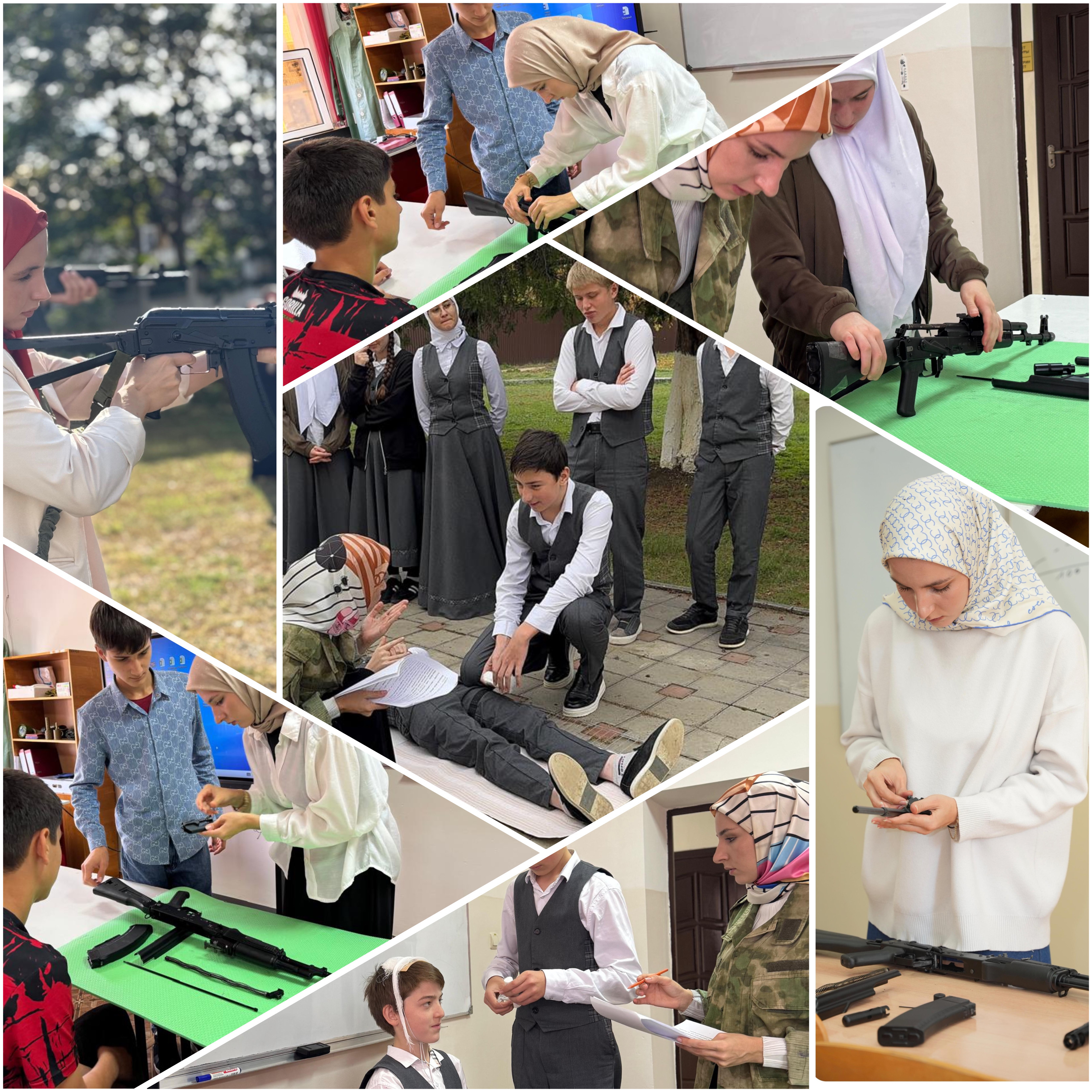 Для лучшего понимания основ тактики Марха Хасановна познакомила учащихся с главным документом, регламентирующим все действия войск в боевой обстановке; пробудила у учащихся интерес к изучению основ военной науки, а также приступила к изучению военного блока предмета и со знакомства с одной из трёх главных частей военного искусства – тактикой. В ходе занятий изучили их основные формы, а также показала разборку и сборку автомата Калашникова.