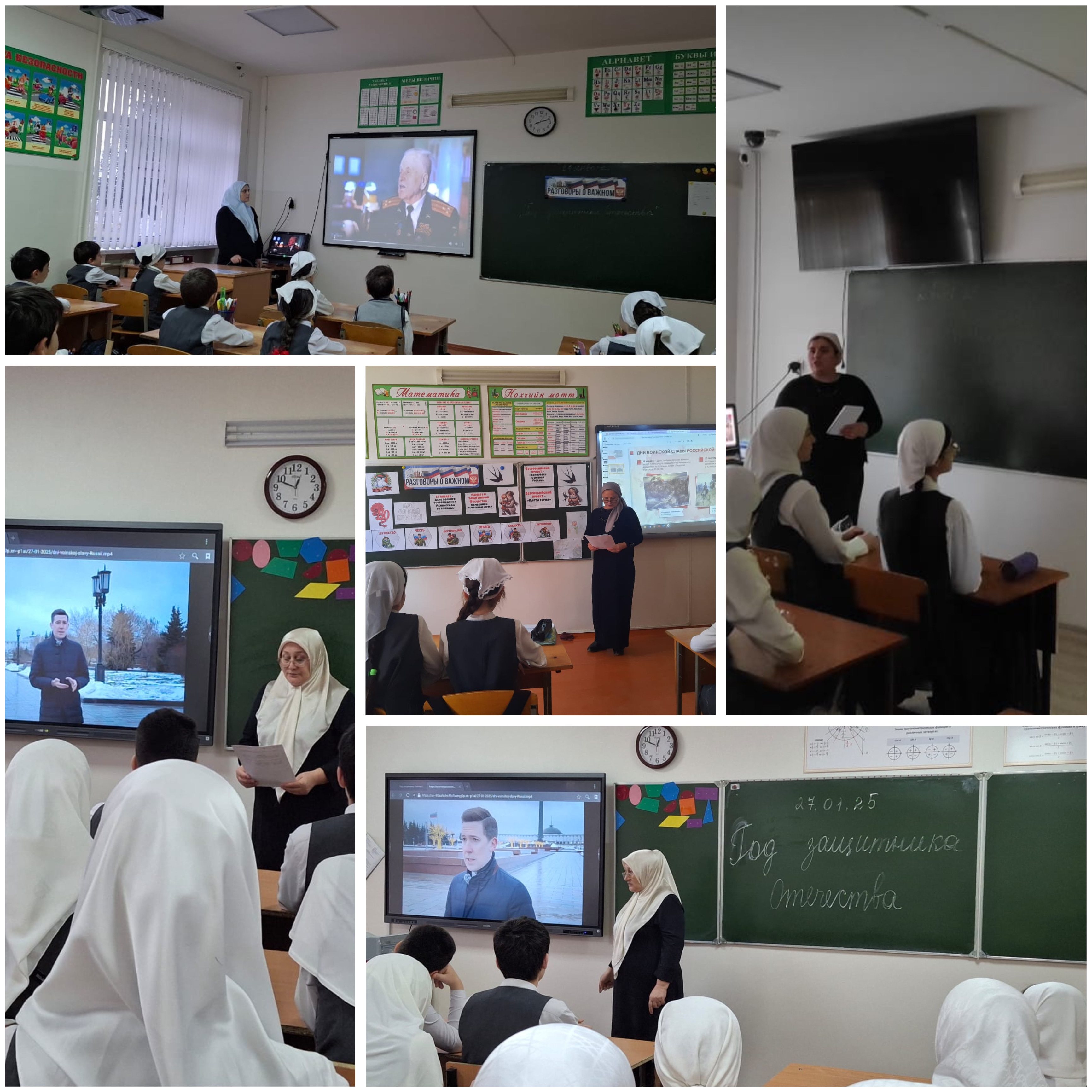 27 января в МБОУ «СОШ№4 с.Серноводское» проведено внеурочное занятие из цикла «Разговоры о важном», посвященное Году защитника Отечества, установленному в честь празднования 80-летия Победы в Великой Отечественной войне. Главная цель занятий: развитие ценностного отношения школьников к своей родине России, населяющим ее людям, ее уникальной истории, богатой природе и великой культуре. Занятия направлены на формирование соответствующей внутренней позиции личности школьника, необходимой ему для ответственного поведения в обществе. Школьники посмотрели интервью с участником спецоперации, узнали, почему люди всегда защищали Родину и почему бойцы СВО — герои. Старшеклассникам показали фрагменты передачи «Бесогон ТВ» (18+) с Никитой Михалковым. Ребята просмотрели видеоинтервью с ветераном Великой Отечественной войны Константином Сергеевичем Федотовым и участником СВО Николаем Андреевичем Соколовым.
