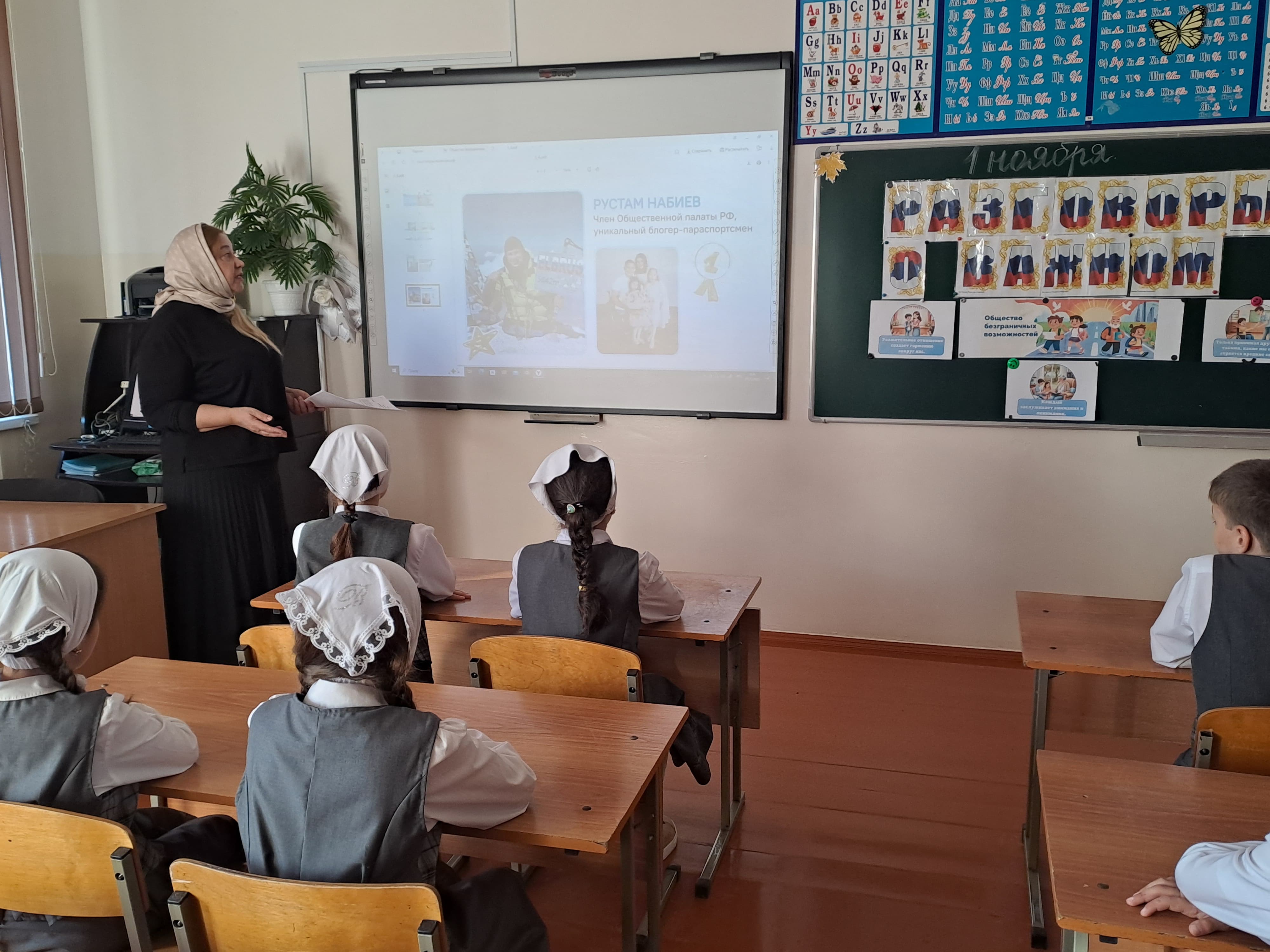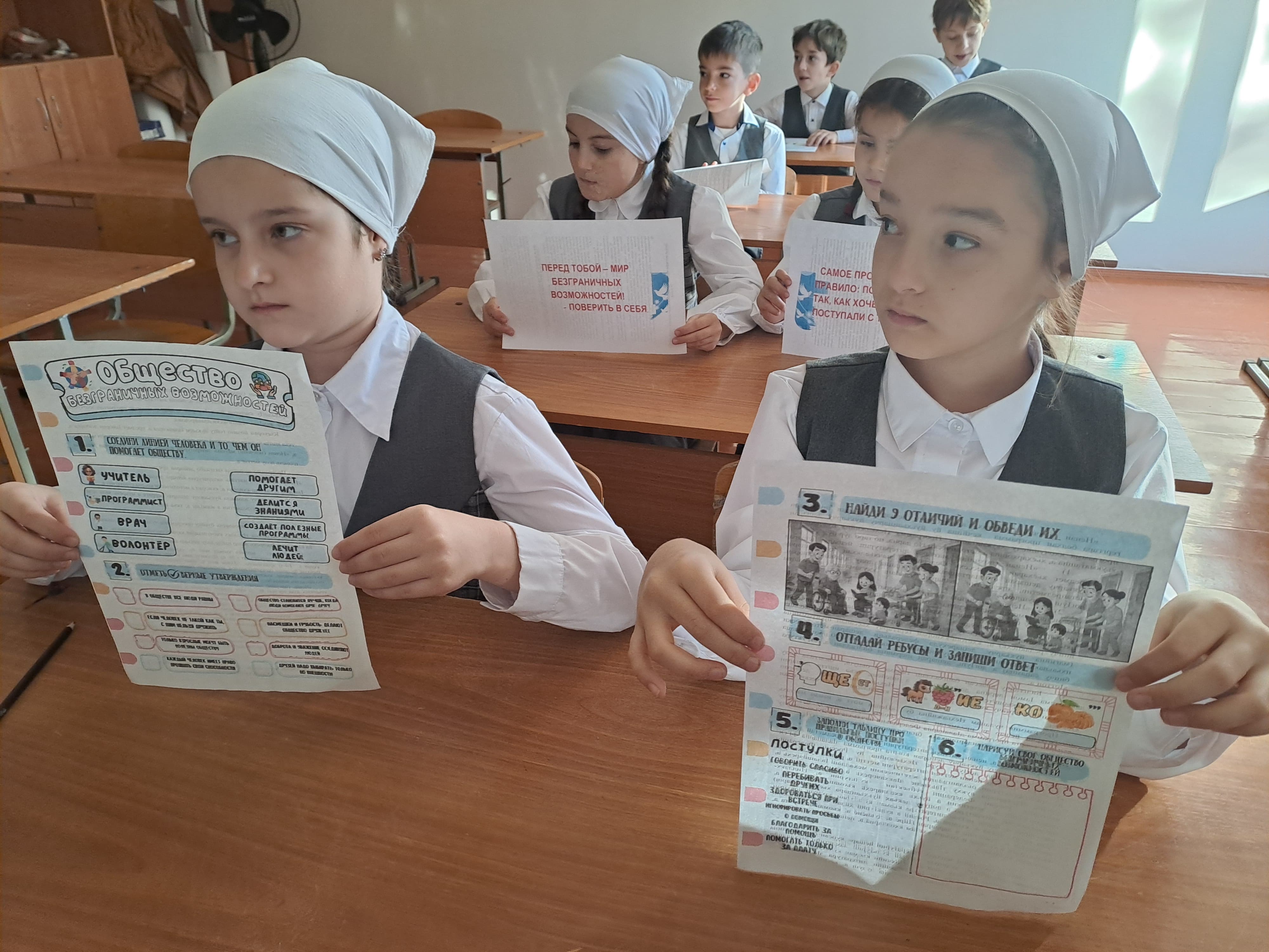 1 ноября в 1-11 классах МБОУ «СОШ №4 с. Серноводское» проведено внеурочное занятие на тему «Общество безграничных возможностей». В ходе занятия учащиеся познакомились с концепцией инклюзивного общества, обсудили важность равных прав и возможностей для всех людей независимо от их физических, социальных или культурных особенностей. Были организованы интерактивные игры и обсуждения, направленные на развитие эмпатии, толерантности и уважения к разнообразию. Занятие способствовало формированию позитивного отношения к людям с ограниченными возможностями и пониманию важности создания доступной и поддерживающей среды для каждого.