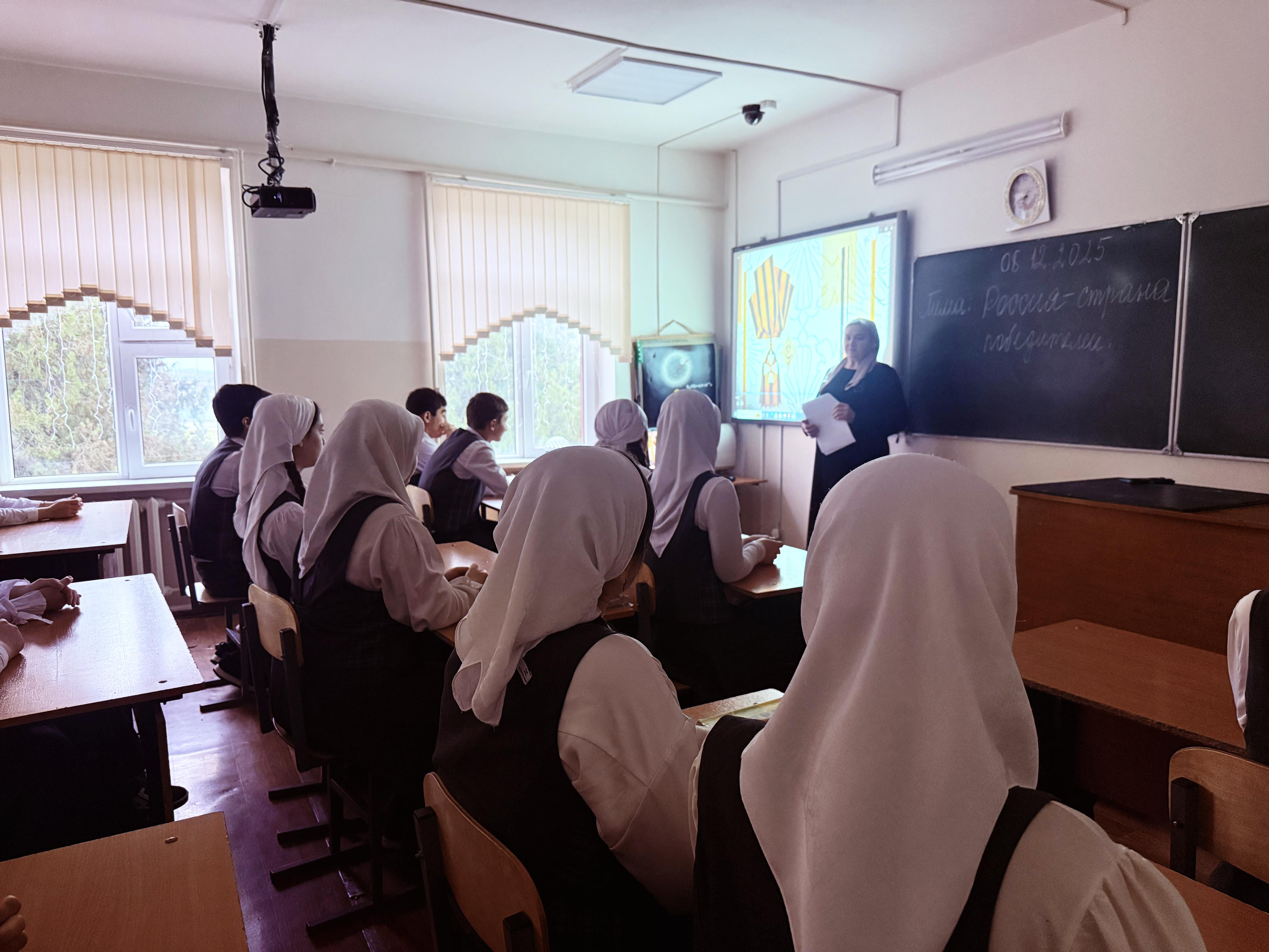 8 декабря в МБОУ «СОШ№4 с.Серноводское" проведено внеурочное занятия "Россия — страна победителей" для 1-11 классов.