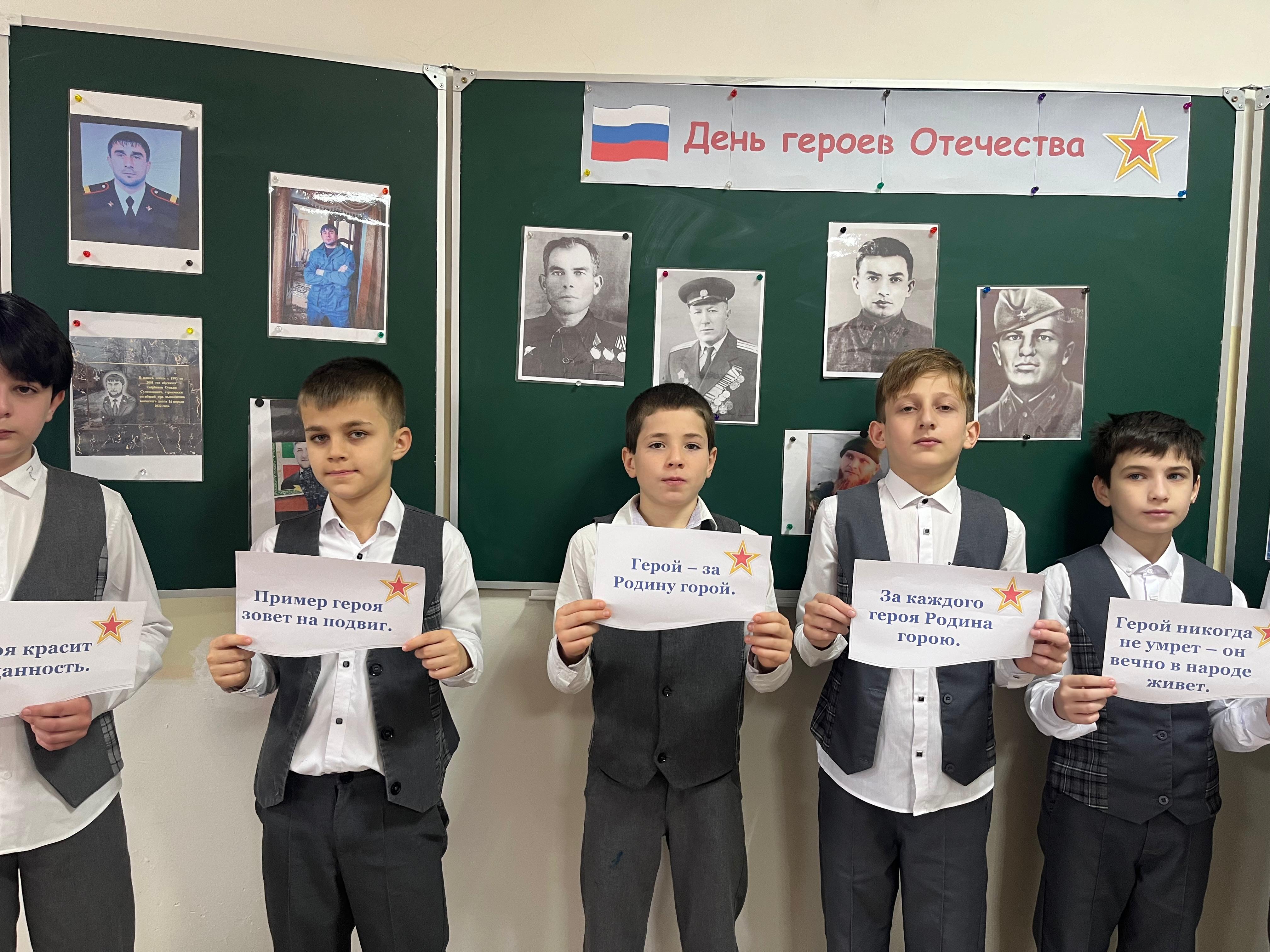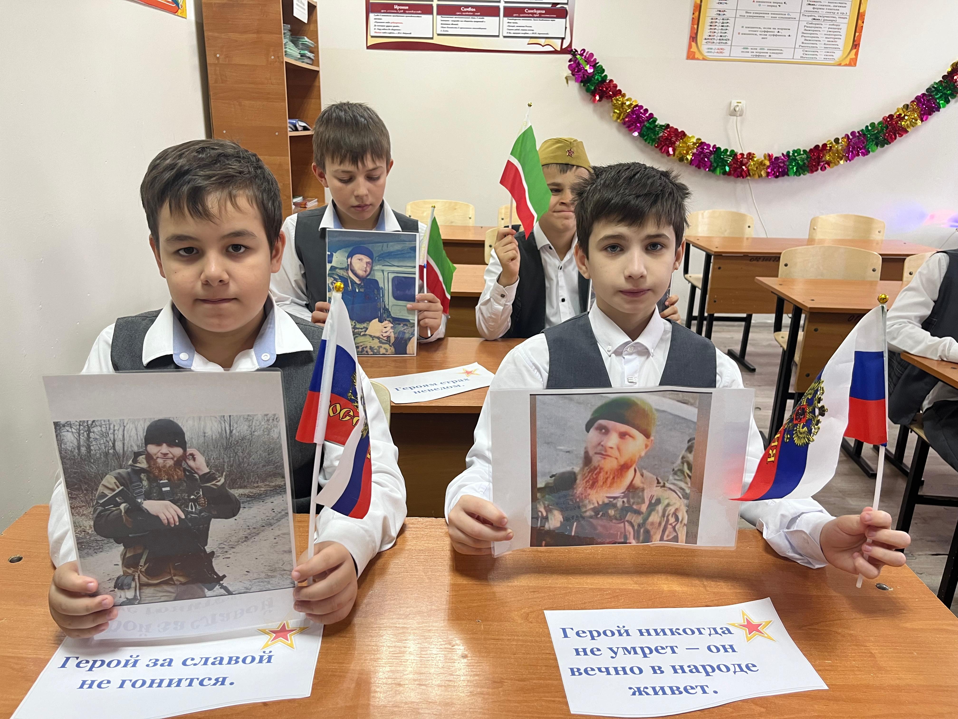 В преддверии праздника Дня Героев Отечества в МБОУ «СОШ№4 с.Серноводское» прошло внеклассное мероприятие, посвященное герою специальной военной операции Гайрбекову Супьяну Сулимановичу. Его сын, Гайрбеков Сайфула, ученик 6А класса, был глубоко тронут, когда держал в руках фотографию своего отца, погибшего в 2022 году на Украине. Этот день стал особенным для него и для всех нас, потому что мы смогли вспомнить героизм и мужество не только его отца, но и всех тех, кто отдал свою жизнь за Родину, мы смогли почтить память настоящего героя, который проявил мужество и самоотверженность, защищая свою Родину. Сайфула с гордостью рассказывал о своем отце, о его доблести и любви к семье. Говоря о нем, он выражал гордость и печаль, и в глазах сверкали слезы — это был трогательный момент, который заставил всех присутствующих задуматься о ценности жизни и жертвах, которые приносят наши герои.