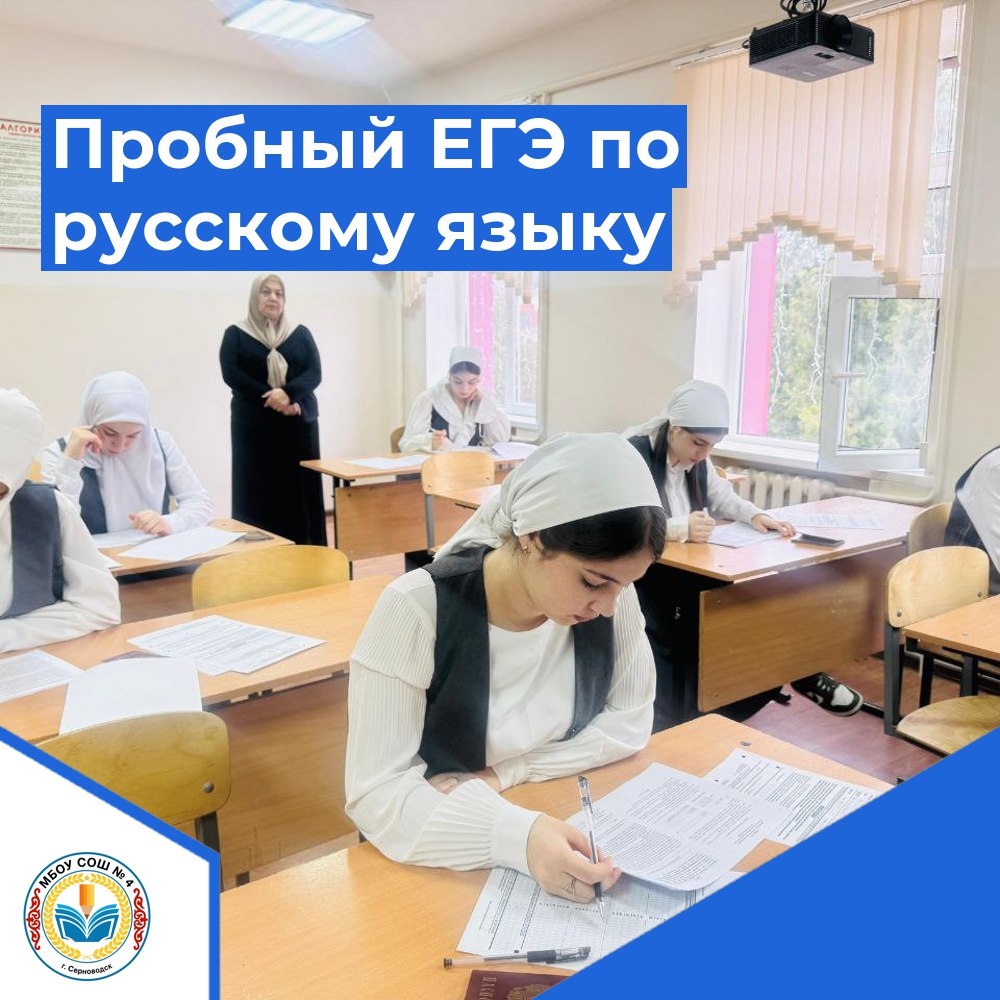 13 декабря 2025 года в МБОУ "СОШ №4 г. Серноводск" прошел пробный ЕГЭ по русскому языку, целью которого является подготовка выпускников к основному государственному экзамену. В мероприятии приняли участие учащиеся 11 класса, а также преподаватели и организаторы, ответственные за проведение экзамена.