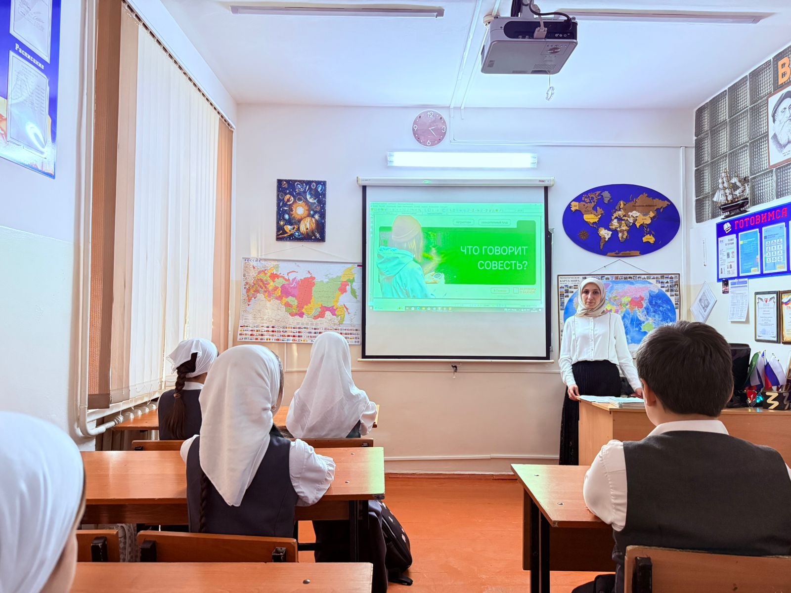 22 декабря в МБОУ СОШ №4 с. Серноводское было проведено внеурочное занятие «Что такое совесть?» для учеников с 1 по 11 класс. На этом занятии ребята обсуждали понятие совести, его роль в жизни человека и значимость моральных ценностей.