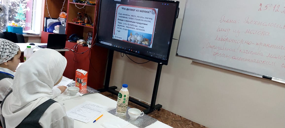 26 декабря в МБОУ «СОШ № 4 с. Серноводское» была проведена лабораторная работа в 6-х классах учителем технологии Джантаевой М.В. на тему «Органолептический способ определения качества молока и молочных продуктов».