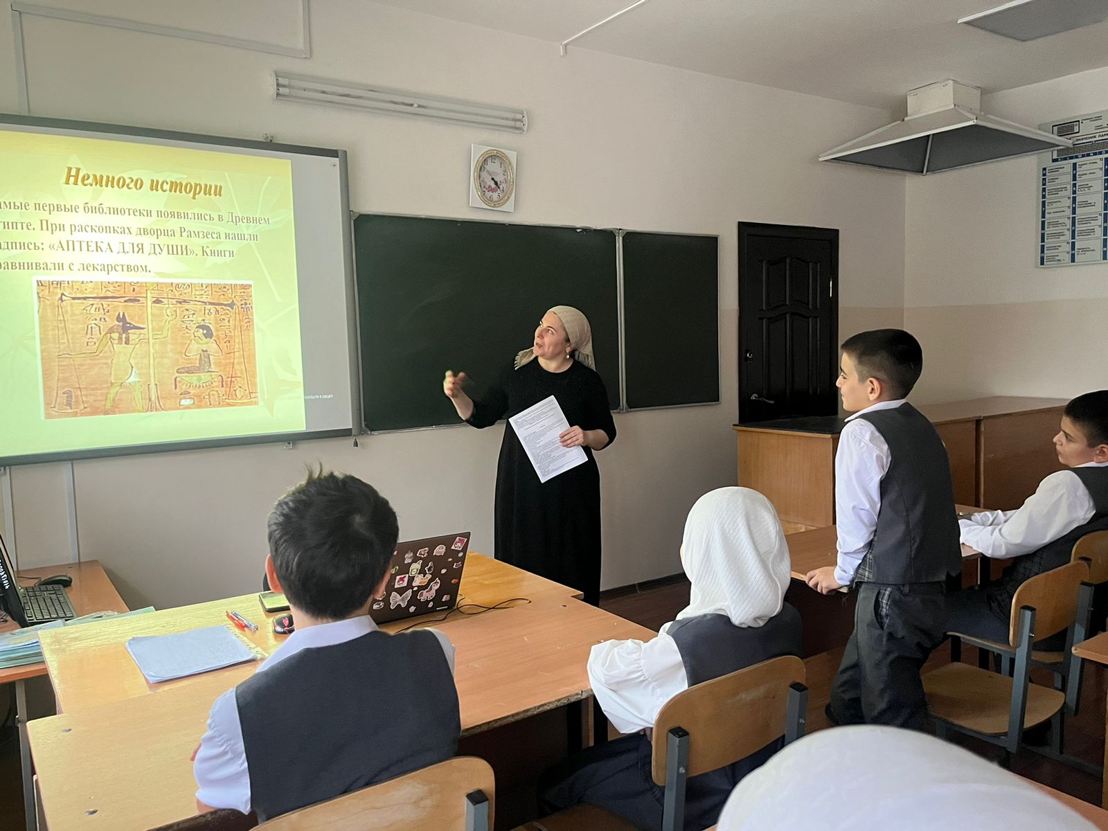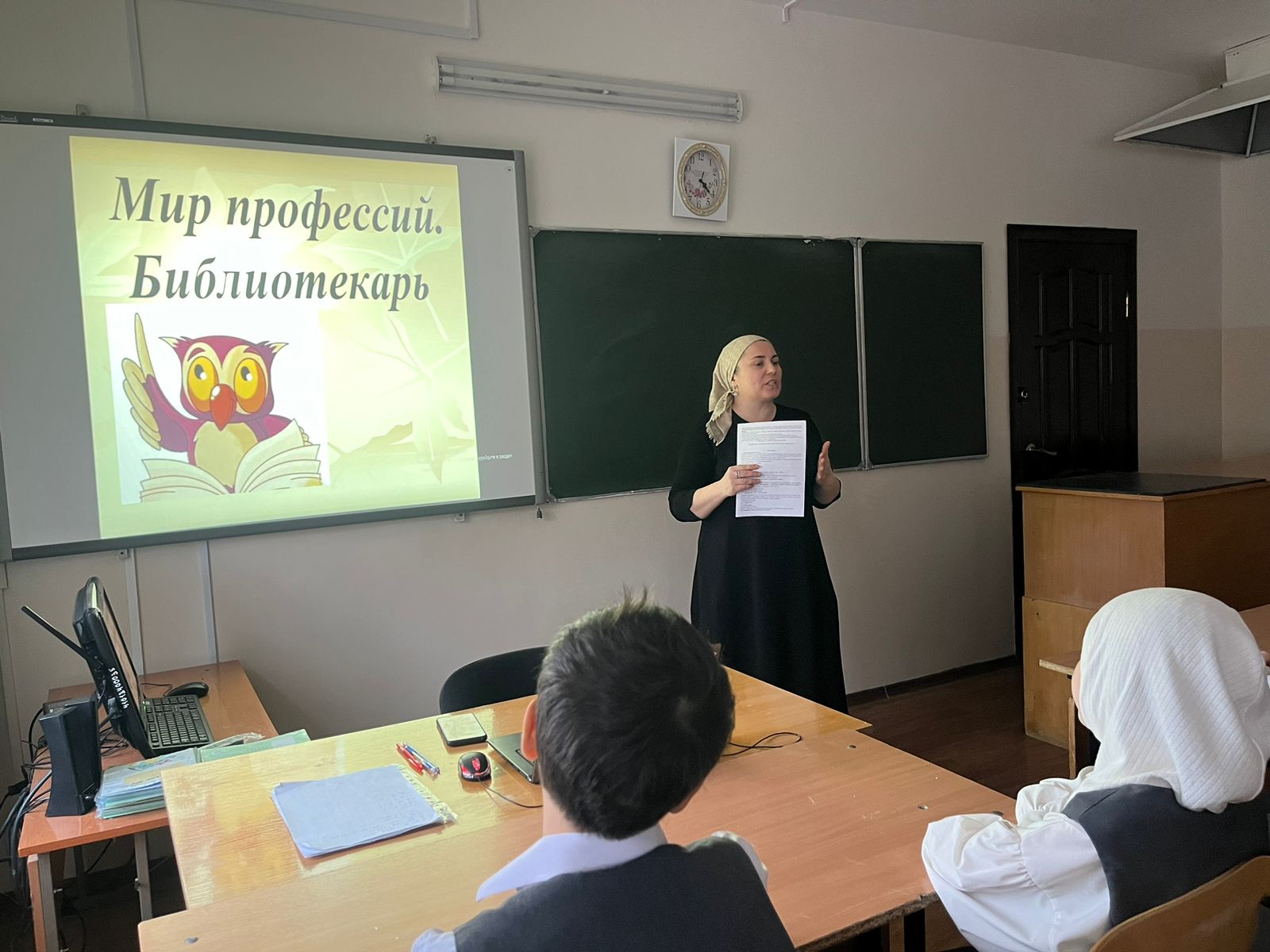 Сегодня в нашей школе, под руководством классного руководителя Ахмадовой Р.Ш., состоялся профориентационный урок в 6-х классах на тему «Мир профессий. Библиотекарь».