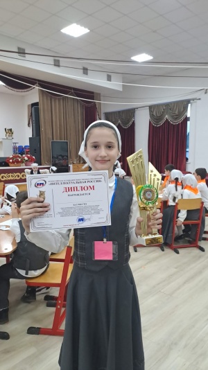 Ученица 4-Б класса Сатуева Даяна заняла 1 место в первом республиканском тематическом интеллектуальном турнире «Умножая таланты 2026» по интеллектуальной игре «Своя игра» среди команд общеобразовательных организаций Чеченской Республики, который проводился на Кубок Администрации Главы и Правительства Чеченской Республики. Даяна продемонстрировала отличные знания по следующим школьным дисциплинам: окружающий мир, математика, русский язык и литература., чеченский язык и литература, технология, физическая культура