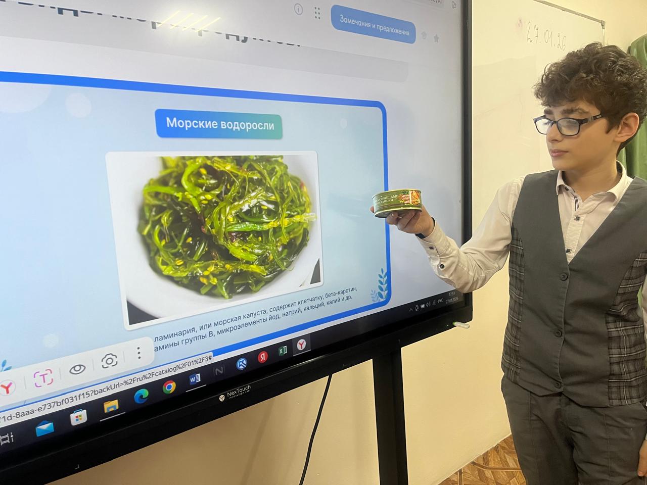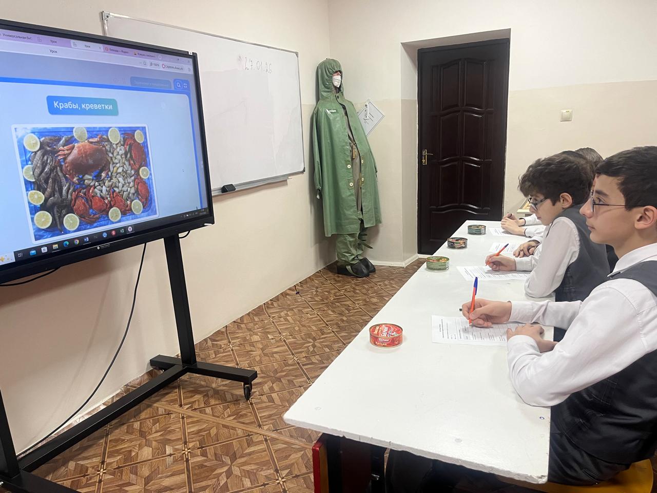 27 января в МБОУ «СОШ № 4 с. Серноводское» учителем технологии Джантаевой М.В. была проведена лабораторно-практическая работа в 7 А классе на тему «Изучение информации на банке с рыбными консервами».