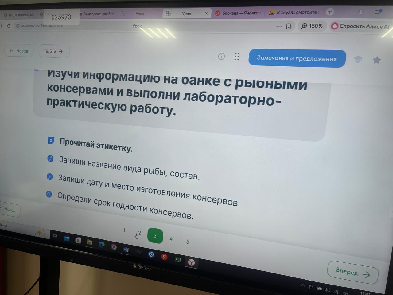 Целью работы было научить учащихся правильно анализировать информацию, представленную на упаковке рыбных консервов, а также понять важность этих данных для выбора качественного продукта. В ходе работы ребята ознакомились с составом, сроком годности, условиями хранения и другими важными характеристиками, указанными на этикетке.