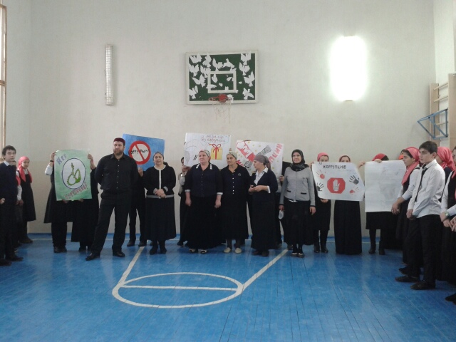 09.12.2014В рамках антикоррупционной недели, приуроченной к Международному дню борьбы с коррупцией, в МБОУ СОШ№4 прошла акция «Коррупции – нет!» с участием учащихся 8-11 классов, на которой присутствовали классные руководители и администрация школы. Учащиеся выразили протест против коррупции как фактора нарушения прав человека.